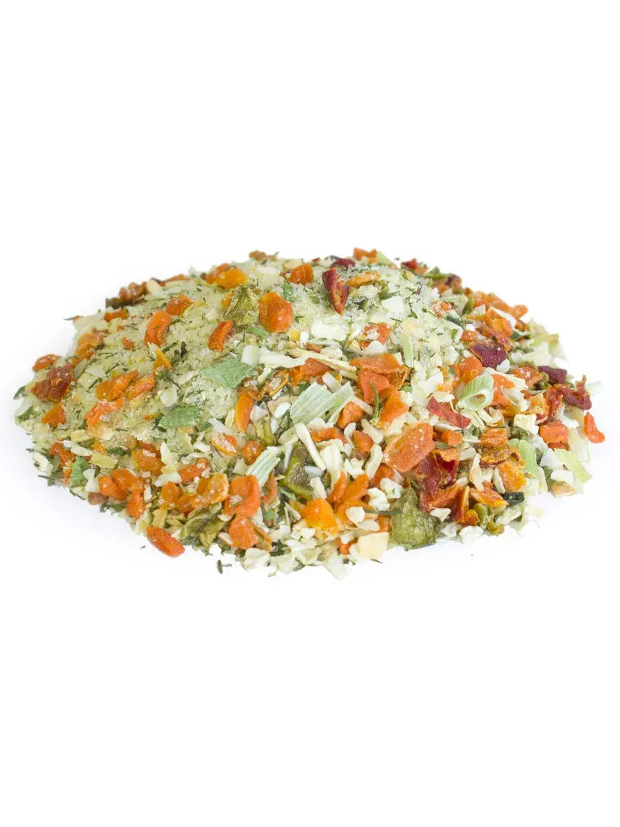Универсальная приправа для любых блюд - это великолепная смесь сушеных овощей и пряностей. Она, несомненно, займет достойное место при приготовлении любых блюд из мяса, рыбы, овощей, при приготовлении различных супов, соусов и т. д. Паприка и зелень, входящие в состав приправы, являются излюбленным компонентом венгерской, испанской, итальянской, французской, мексиканской и многих других кухонь мира, благодаря своему вкусу. Паприка и зелень придадут вашему блюду аппетитный вид и прекрасный аромат.