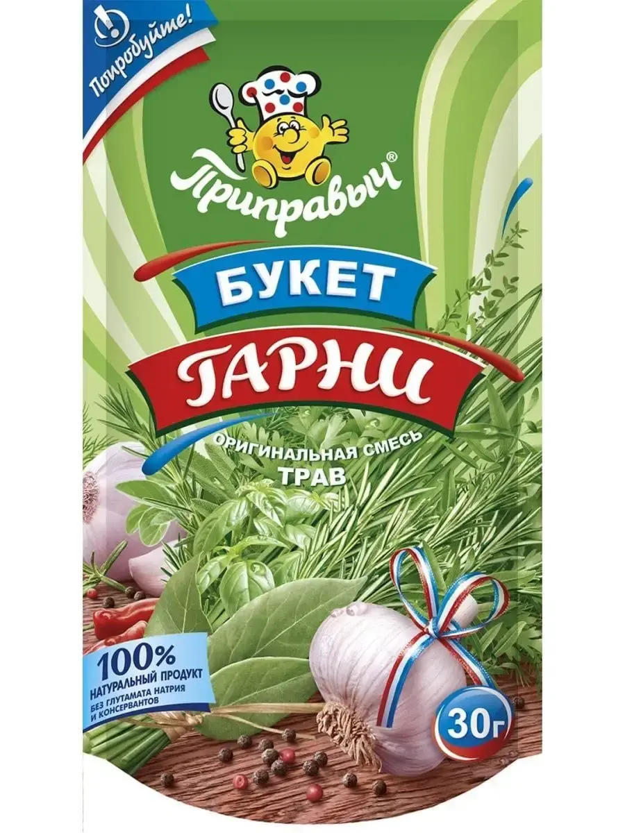 Родиной приправы «Букет Гарни» является Франция. «Букет Гарни» представляет собой пучок сухих или свежих пряных трав разных видов и используется для улучшения вкуса и аромата супов, бульонов, соусов, тушёных блюд. Уникальный французский рецепт, собрал пряные травы в приправу «Букет Гарни», чтобы вы могли прочувствовать тонкий аромат французской кухни и порадовать своих родных и близких!