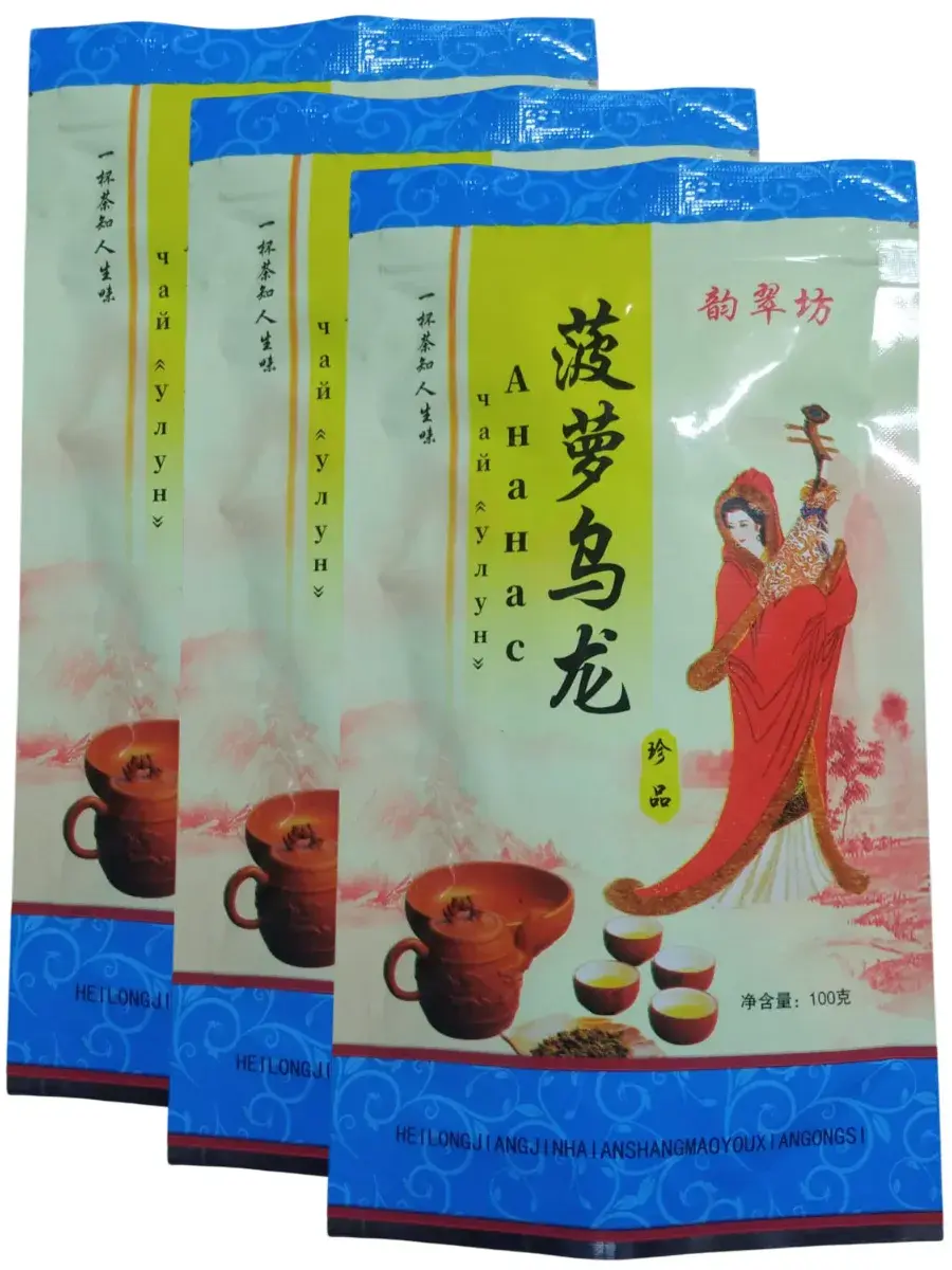 Это весьма интересный чай — традиционный Улун с нотками спелого ананаса. Свежесть чая «Ананасовый Улун» завораживает. Напиток способен взбодрить вас после тяжелых физических и умственных нагрузок. Аромат очаровывает с первых глотков, а густое насыщенное послевкусие заставляет вспоминать этот чай снова и снова. Улун хорош как утром, потому что дарит свежесть и яркие эмоции, так и днем для поддержания бодрости и рабочего тонуса, а также вечером — помогает снять напряжение. Способ употребления: положите чай в чайный сервиз и залейте его кипятком примерно на 3-5 минут. В комплекте 3 пачки по 100 г.