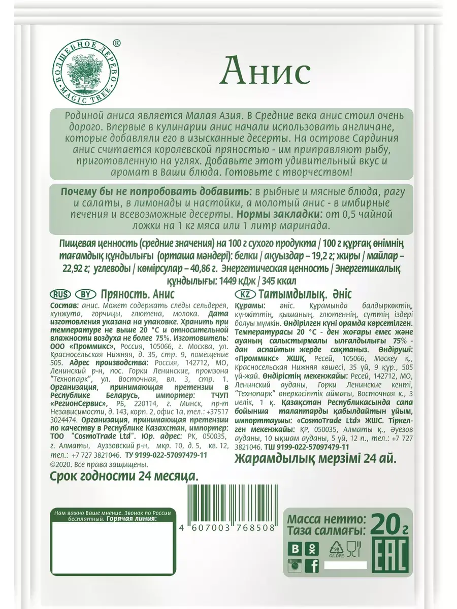 Анис целый. Может содержать следы сельдерея