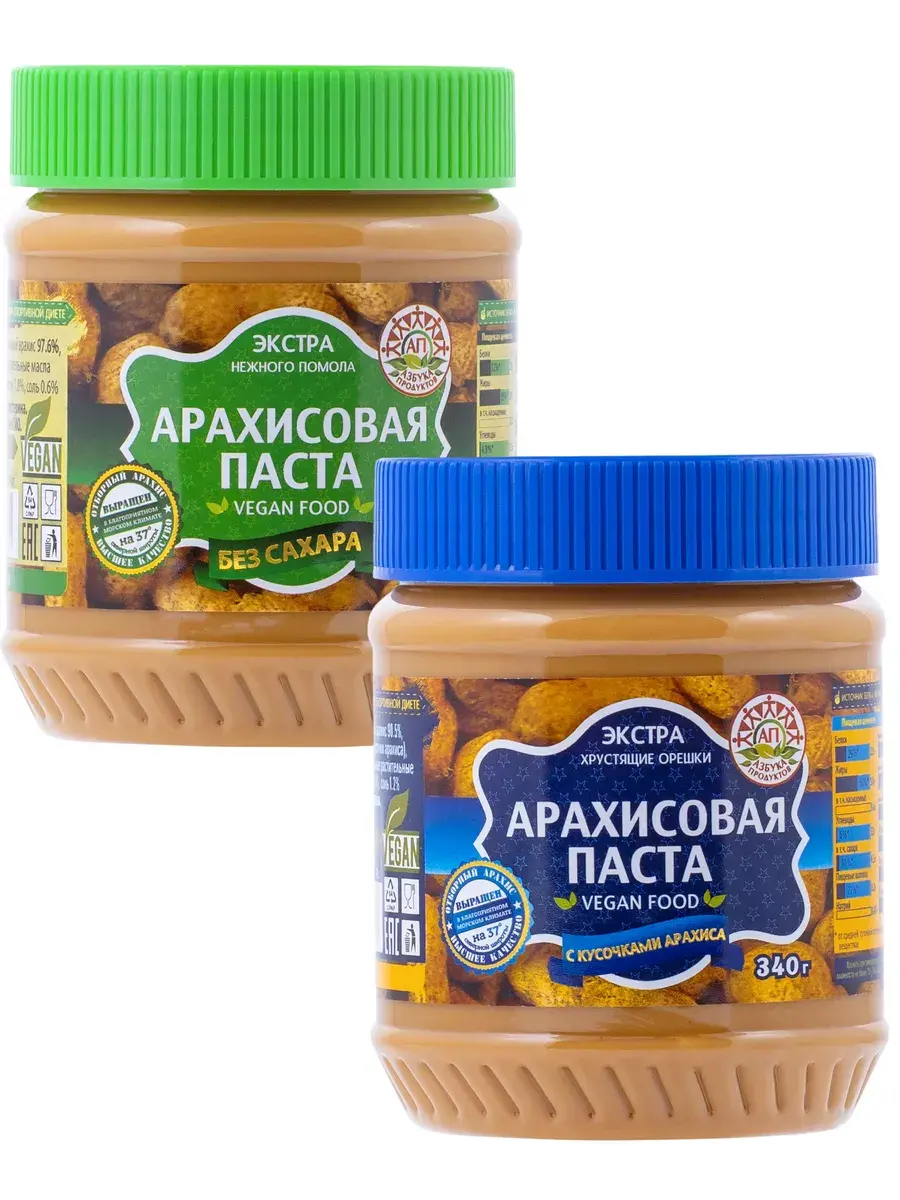 Арахисовые пасты линейки ЭКСТРА производятся в Китае и обладают нежной кремовой структурой, благодаря технологии максимального помола арахиса. Идеальная добавка к полезным завтракам и перекусам для всех, кто поддерживает здоровый образ жизни и заботится о своем здоровье. Арахисовая паста идеальна для приготовления правильных здоровых сэндвичей, невероятно вкусна с фруктами (яблоками, бананами и пр.), как добавка к блинчикам, замечательно подходит для выпечки арахисового печенья и кексов, полезный ингредиент для различных соусов и салатов, а также напитков и коктейлей. В наборе 2 баночки по 340г ассорти.
