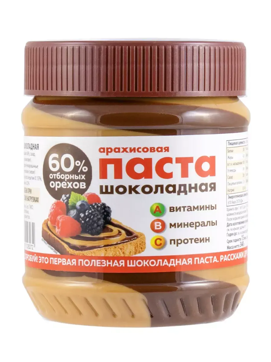 Шоколадная паста арахисовая является источником белка, витаминов и микроэлементов. Незаменима при умственных и физических нагрузках. Идеальная добавка к полезным завтракам и перекусам для всех, кто поддерживает здоровый образ жизни и заботится о своем здоровье. Очень нравится детям, прекрасная альтернатива вредным шоколадным пастам, содержащим огромное количество сахара и пальмового масла. Витамины, микроэлементы и антиоксиданты, входящие в состав арахиса, благотворно влияют на все системы организма. Большое количество белка помогает наращивать мышечную массу, а в растительных жирах полностью отсутствует холестерин. В наборе 2 баночки по 340г ассорти.