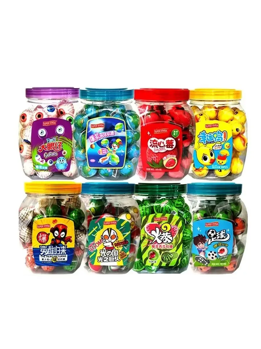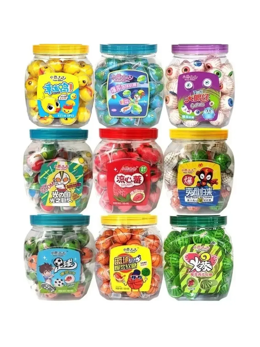 Ассорти мармеладов с фруктовым джемом внутри. Клубник, персик, банан, арбуз, манго, панда, мячи баскетбольные, игра в кальмара, уточки, футбольные мячи, планеты, планета Земля и другие. Так же в подарок Вы получаете 3 пакета Супер кислых леденцов с фруктовыми вкусами.