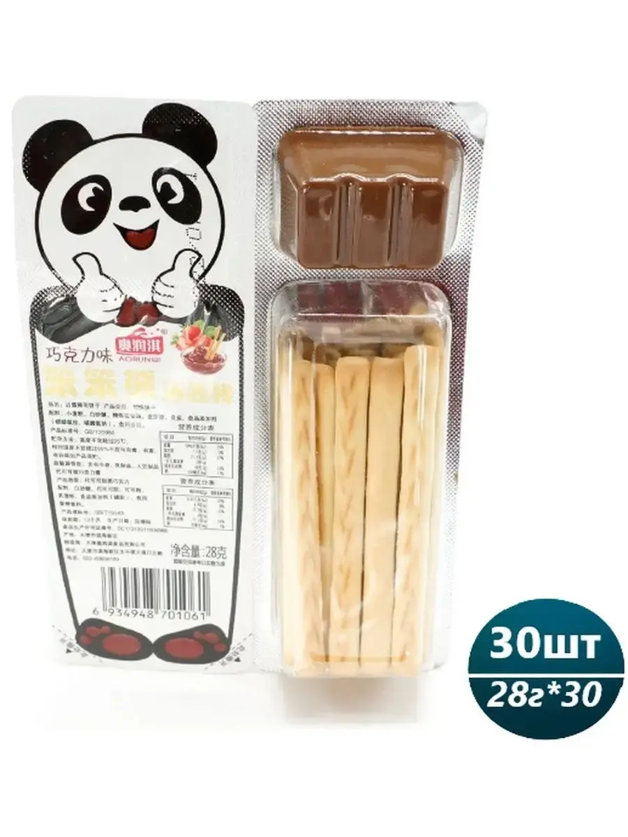 Хрустящие азиатские сладкие палочки Панда с дип-соусом со вкусом шоколада и клубники не оставят равнодушным ни одного сладкоежку. Макайте палочки в ароматную пасту и просто наслаждайтесь вкусом. Отличный перекус и десерт в одной упаковке, который тает во рту.
