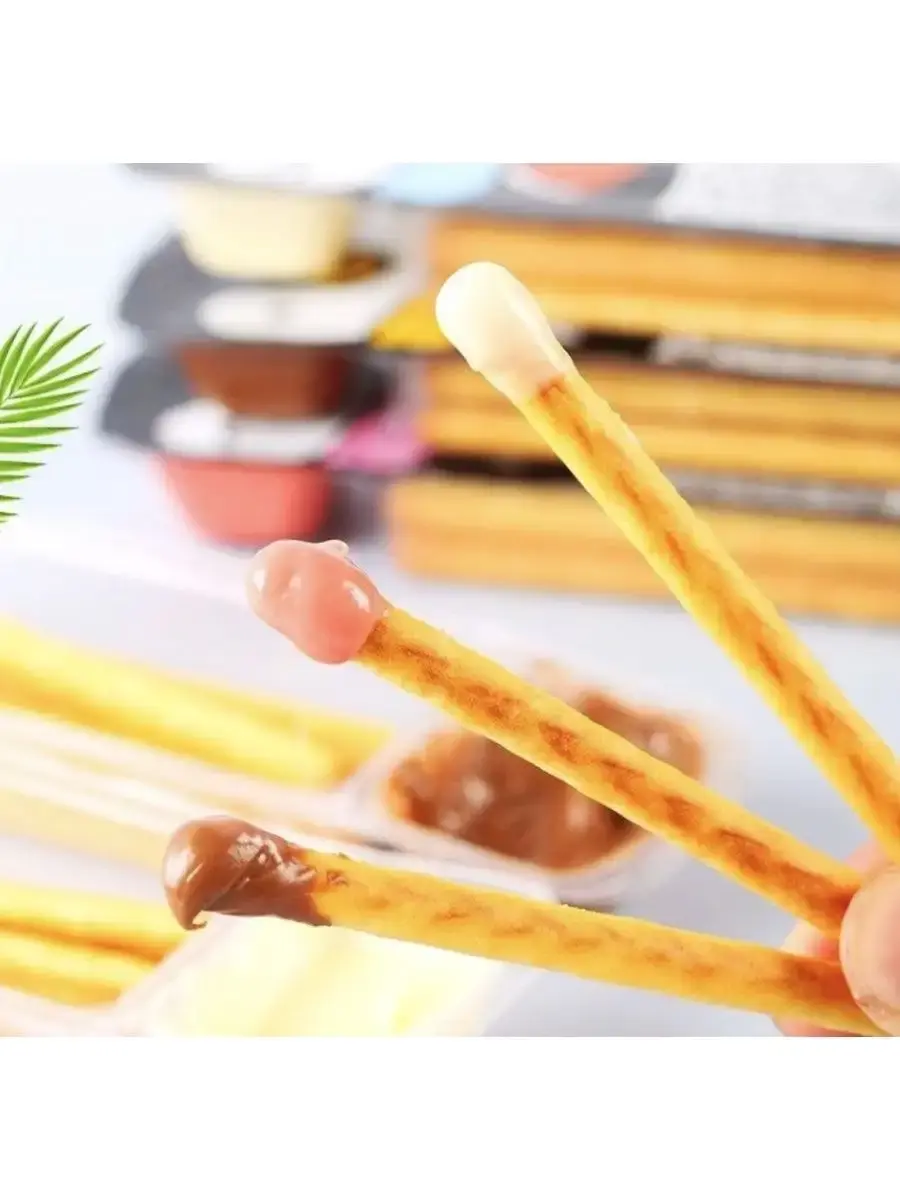 Хрустящие азиатские сладкие палочки Gemi с дип-соусом со вкусом клубники, шоколада и молока не оставят равнодушным ни одного сладкоежку. Макайте палочки в ароматную пасту и просто наслаждайтесь вкусом. Отличный перекус и десерт в одной упаковке, который тает во рту.