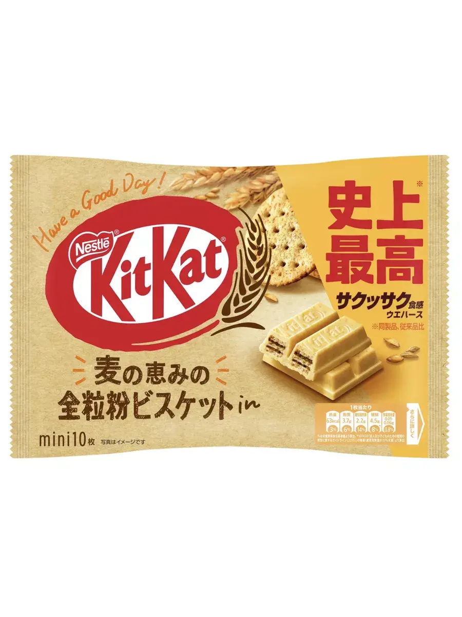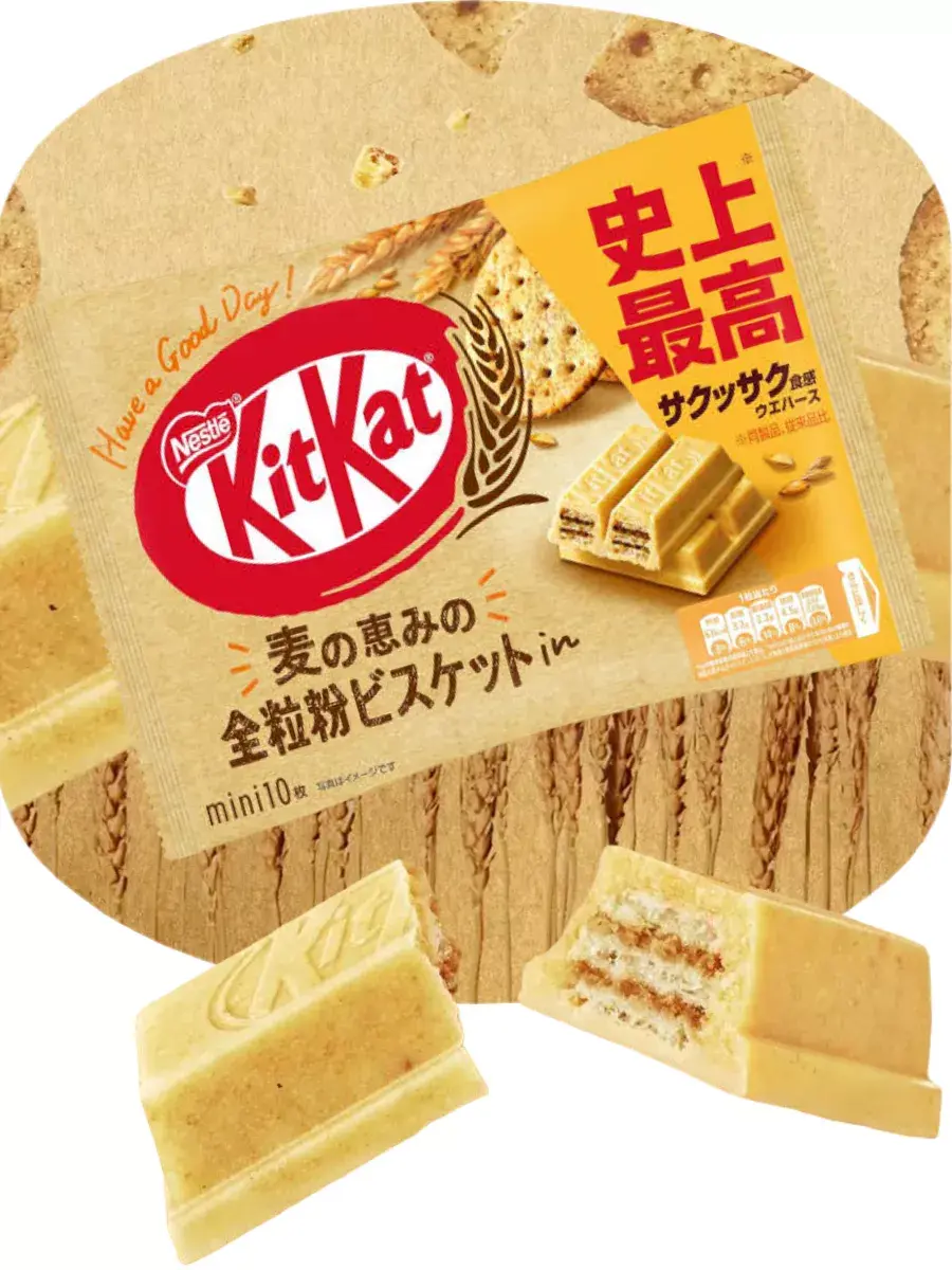 KitKat Whole Grain — это уникальное сочетание японского KitKat (эксклюзивного только для Японии) с восхитительным вкусом печенья из цельнозерновых злаков. Это вкусный и уникальный хрустящий перекус, который идеально подходит для любителей сладостей и приверженцев здорового питания. Японские KitKat сделаны из высококачественных цельнозерновых ингредиентов и покрыты нежным сливочным шоколадом. Они обязательно порадуют вас своим уникальным вкусом. Отлично подойдут для перекуса на ходу или для посиделки с друзьями. Не откладывайте на потом, попробуйте KitKat со вкусом цельнозернового печенья прямо сейчас и откройте для себя новый любимый вкус! В комплекте 1 упаковка, в которой 10 штук мини батончиков.