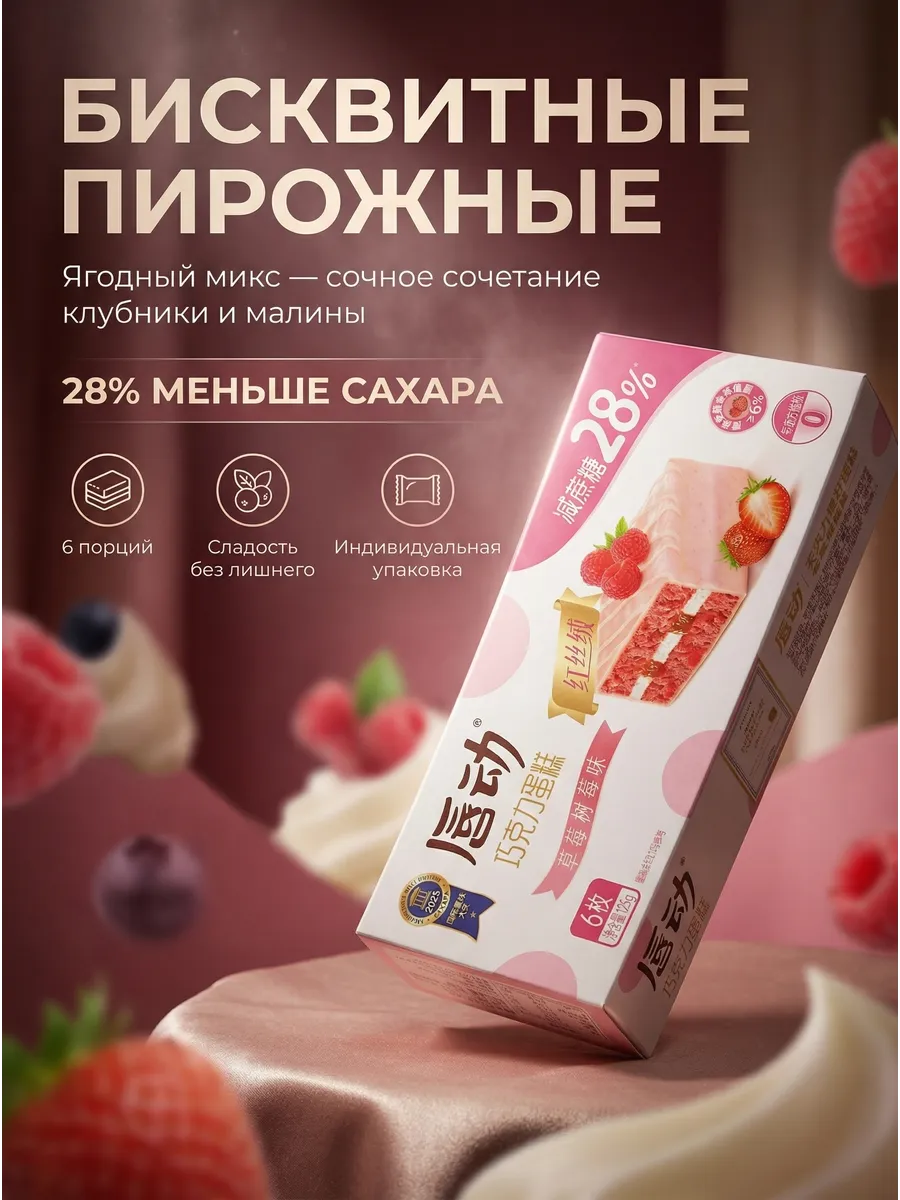 Удобный формат: В каждой коробке весом 125 г находится 6 порционных пирожных, каждое из которых имеет герметичную индивидуальную упаковку. Это идеальное решение для перекуса в офисе, школе, в дороге или в качестве дополнения к чаю и кофе дома.