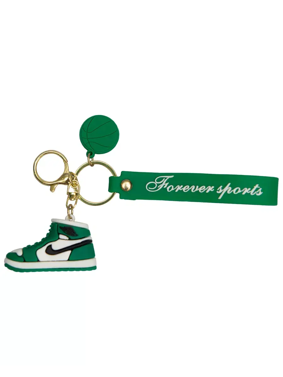Этот стильный брелок в виде культового кроссовка Nike Jordan в насыщенном зелёном цвете — идеальный аксессуар для фанатов баскетбола и уличной моды. Изготовленный из прочной резины, он легко крепится к ключам, сумке или рюкзаку с помощью карабина. А прочный ремешок с надписью "Forever Sports" добавляет дополнительный штрих спортивного духа. Легкость и удобство в каждой детали — бери с собой свою легенду куда угодно! Этот брелок станет твоим талисманом на пути к новым вершинам. Переноси баскетбольный драйв и стиль в повседневную жизнь!