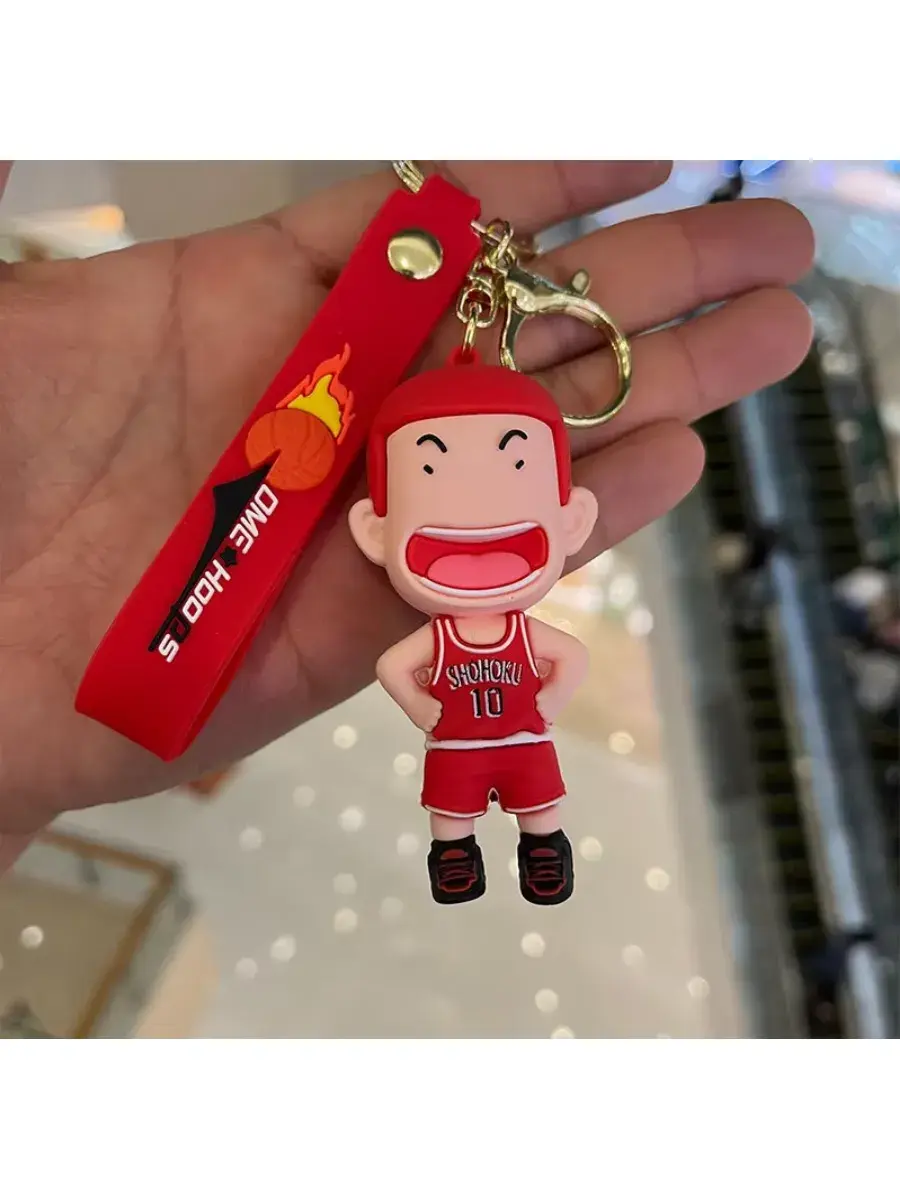 Этот яркий брелок в виде баскетболиста из легендарного аниме Slam Dunk — идеальный аксессуар для фанатов спорта и аниме-культуры. Персонаж в красной форме команды Shohoku добавит энергии и стиля твоим ключам или сумке. Изготовленный из прочного силикона, он легко крепится с помощью карабина, а ремешок с огненным мячом подчеркивает твою страсть к баскетболу. Вырази свою любовь к аниме и спорту в каждой детали! Этот брелок станет твоим талисманом на пути к новым вершинам. Переноси баскетбольный драйв и стиль аниме в повседневную жизнь!