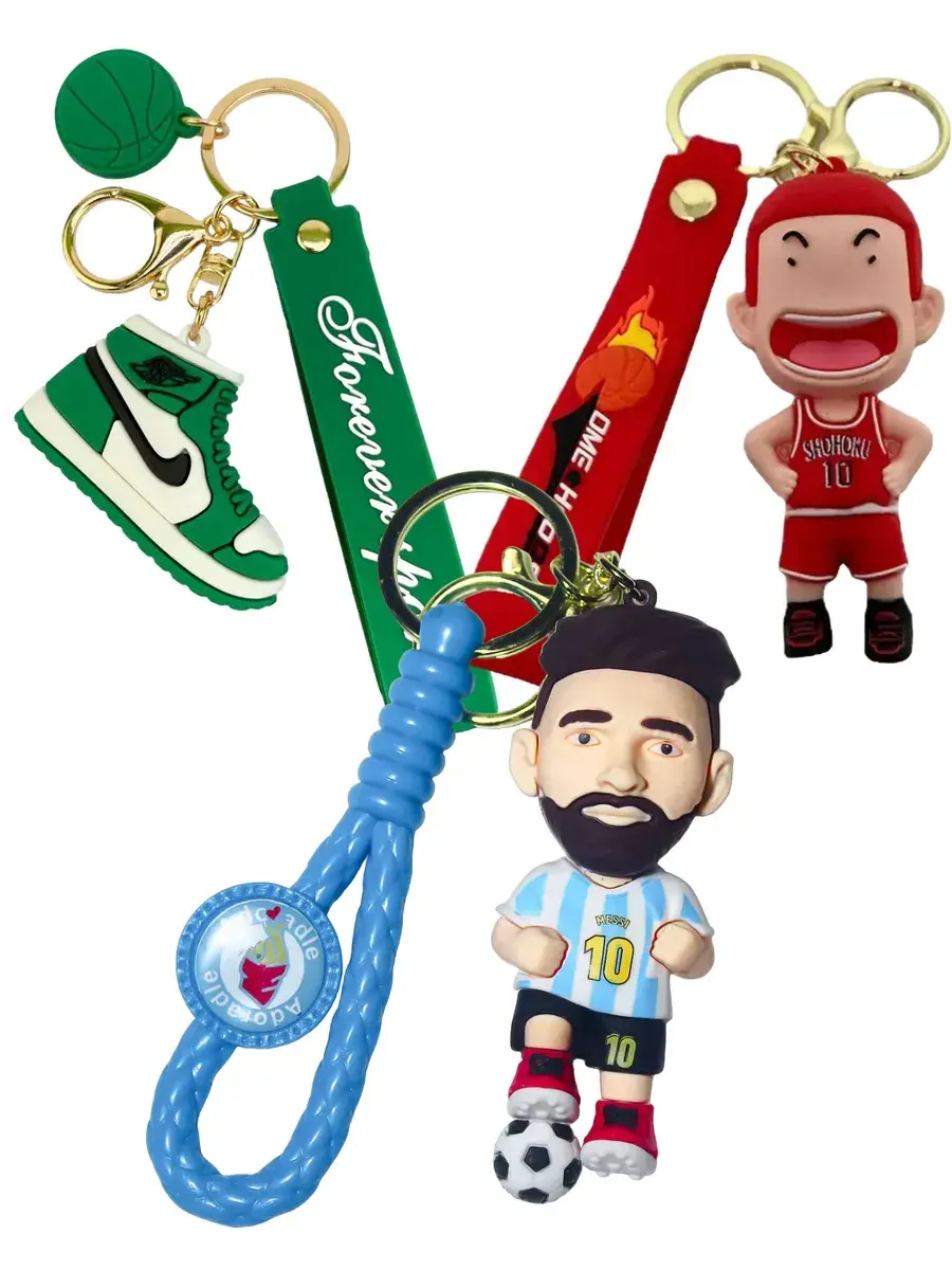 Представляем набор брелоков для настоящих фанатов спорта и стиля! В этот набор входят три уникальных брелока: Баскетбольная коллекция — яркий брелок с культовым кроссовком и баскетбольным мячом. Идеальный аксессуар для тех, кто живет игрой! Аниме-герой Slam Dunk — харизматичный персонаж из любимого спортивного аниме, который придаст твоим ключам или рюкзаку неповторимый стиль. Футбольный гений — брелок с фигуркой одного из лучших футболистов мира в культовой форме. Для всех, кто неравнодушен к футболу и вдохновляется великими игроками.