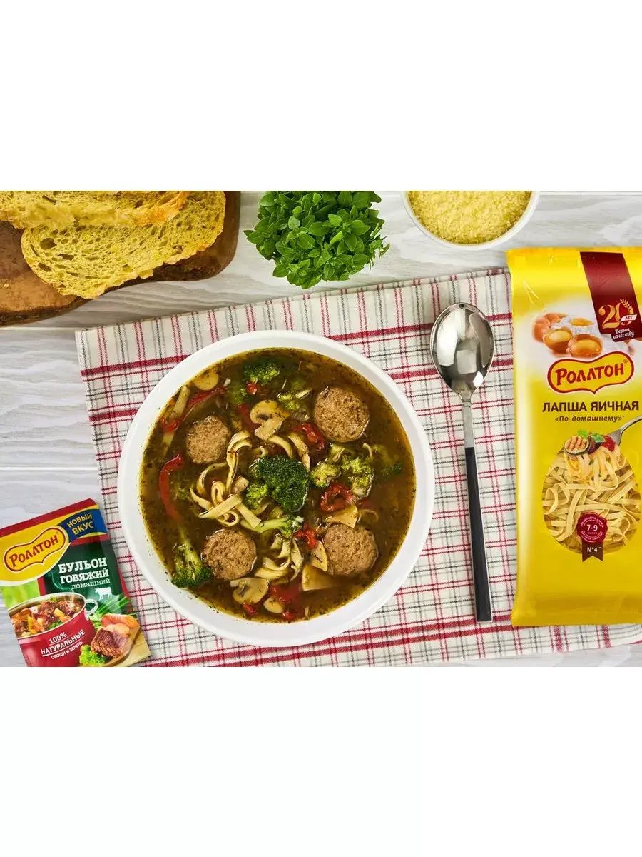 Домашний бульон «Роллтон» имеет превосходный вкус и содержит великолепный букет сушеных овощей и специй, которые придают ему неповторимый аромат. Каждое блюдо нуждается в финальном штрихе: это может быть веточка зелени или говяжий бульон «Роллтон» как приправа в супе. А еще можно добавить немного бульона при варке круп, макарон, запекании или тушении мяса, чтобы получить насыщенный вкус. Сочетание натуральных овощей и душистых специй создаст неповторимый аромат вашего кулинарного шедевра.
