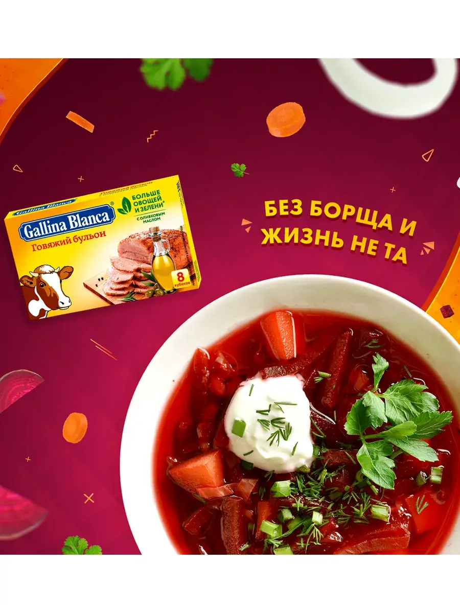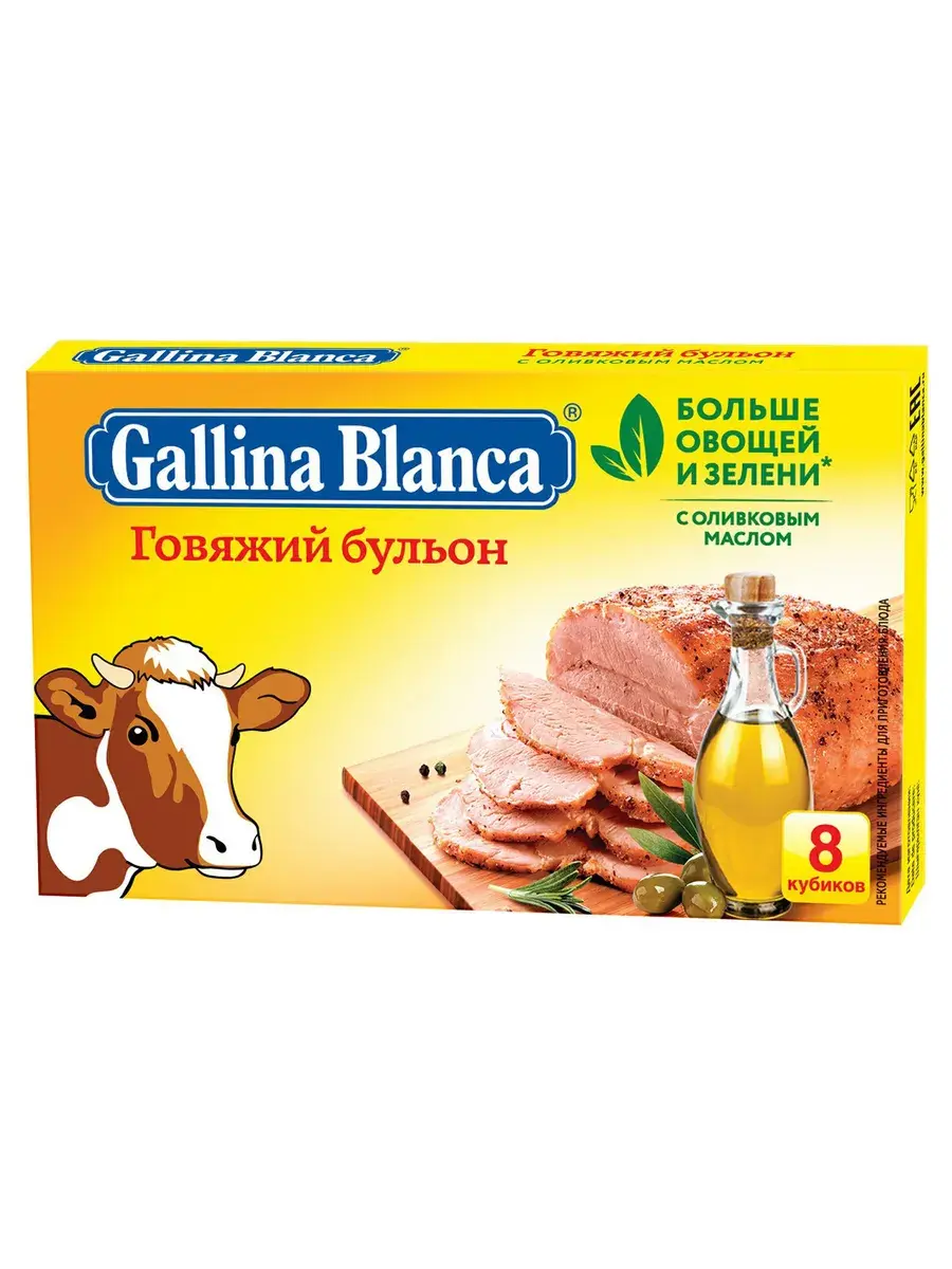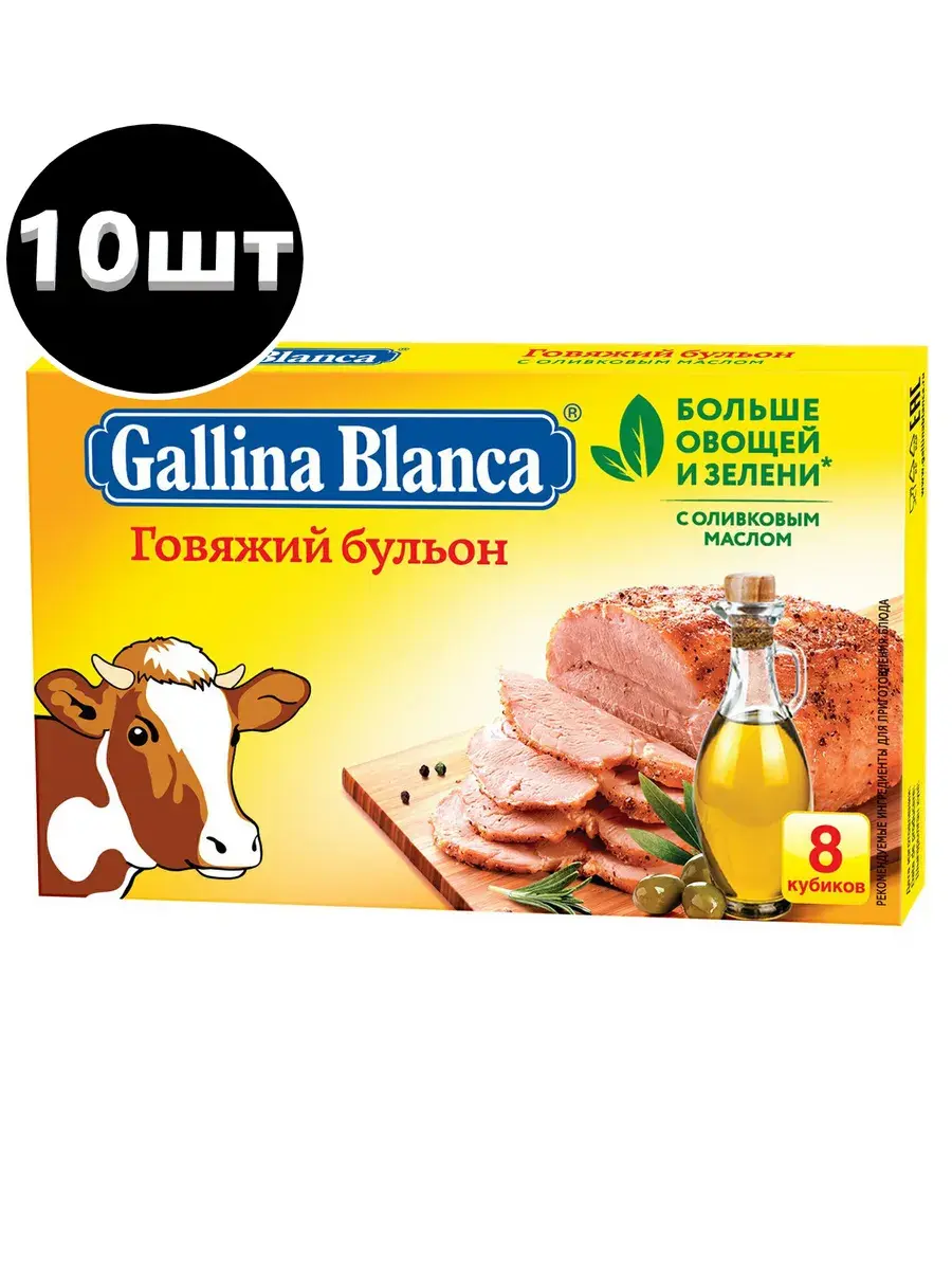 Чтобы сделать домашние блюда вкуснее и интереснее, не нужно искать и покупать сложные и редкие приправы. Добавьте кубики Gallina Blanca Говяжий бульон в конце варки борща, щей и других супов, и их вкус преобразится, станет еще более насыщенным, наваристым, с ароматом долго томившегося бульонаиз мяса. Поэкспериментируйте со вторыми блюдами, гарнирами, отварите на бульоне пельмени. Добавьте в фарш, когда готовите тефтели, фаршированные перцы, и вы увидите насколько вкуснее они станут. Также на говяжьем кубике можно традиционно сварить суп. В комплекте 10 блоков по 80г. В каждом блоке 8 кубиков.