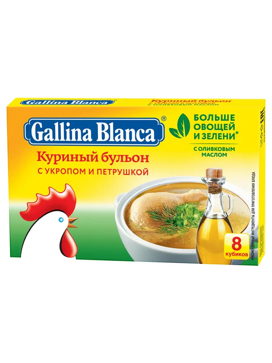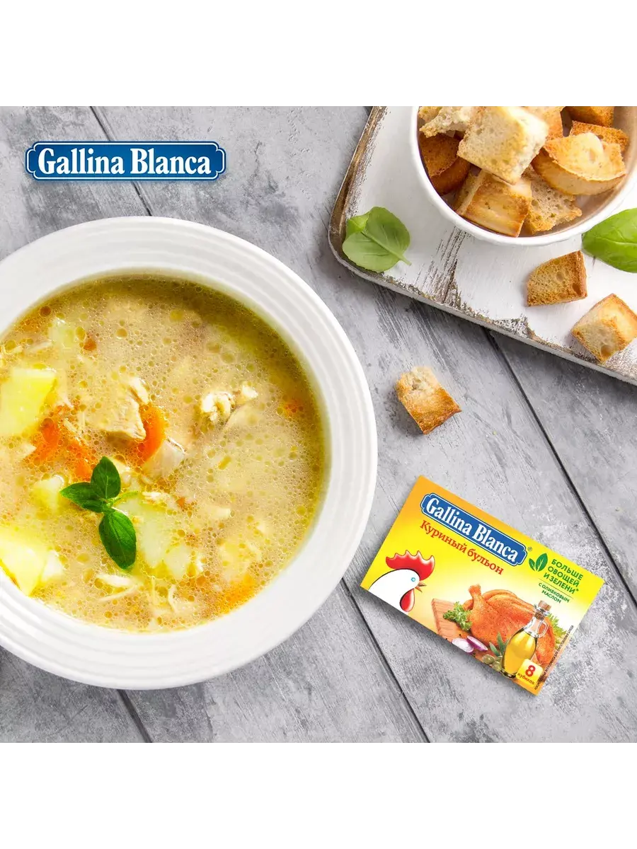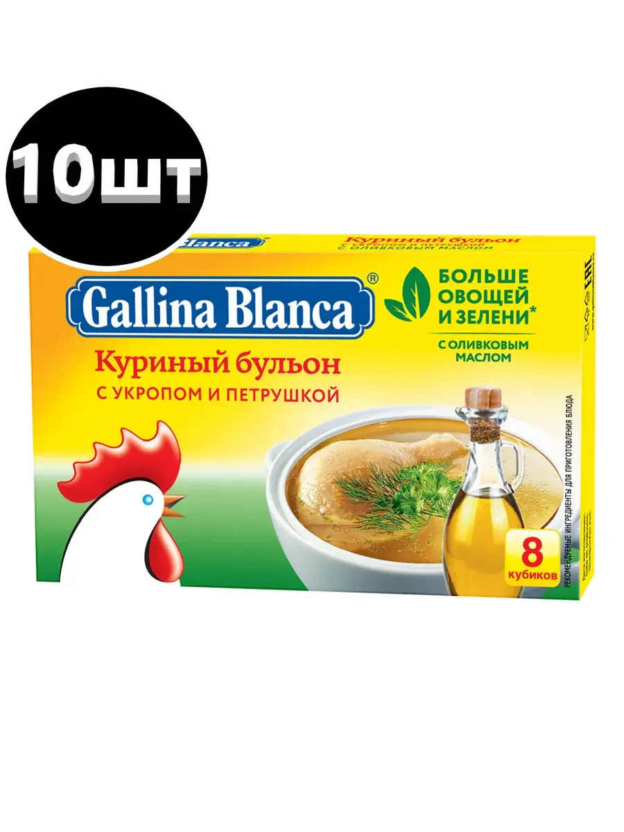 Куриный бульон Gallina Blanca это самый популярный кубик. Добавив его, вы сделаете любое ваше блюдо ароматнее и насыщеннее. Используйте этот продукт не только при приготовлении бульона, но и гарнира, чтобы сделать его привлекательным и золотистым, или попробуйте его для картошки, риса, макарон и даже пельменей. Любое блюдо можно сделать аппетитнее и ярче, добавив куриный кубик. это приправа в удобном формате, которая давно стала классикой. Если вы уже пробовали готовить с кубиками, то наверняка заметили, как они преображают и дополняют самые обычные ингредиенты. В комплекте 1 блок, в котором 10 упаковок по 80г, в каждой упаковке по 8 кубиков.