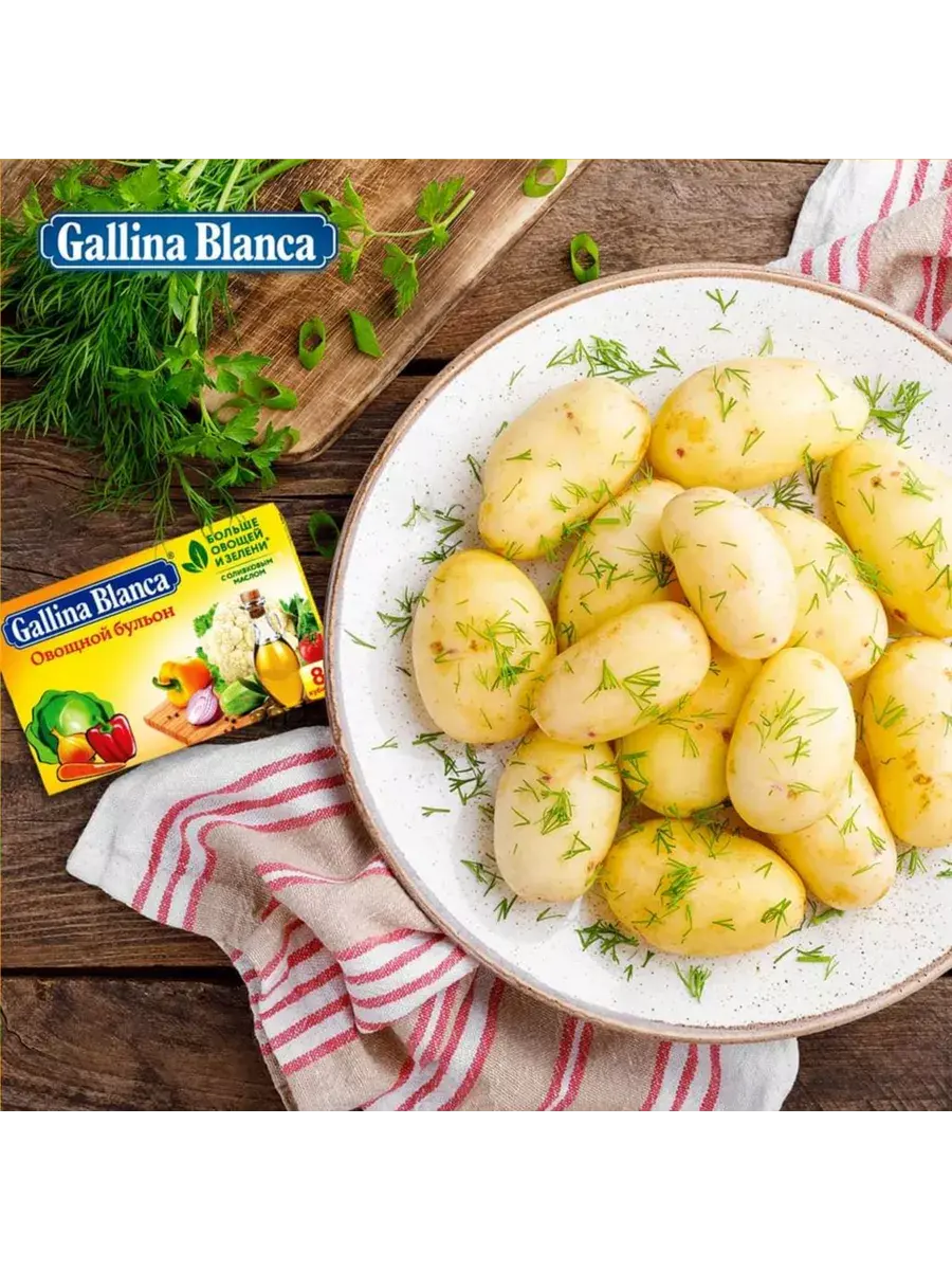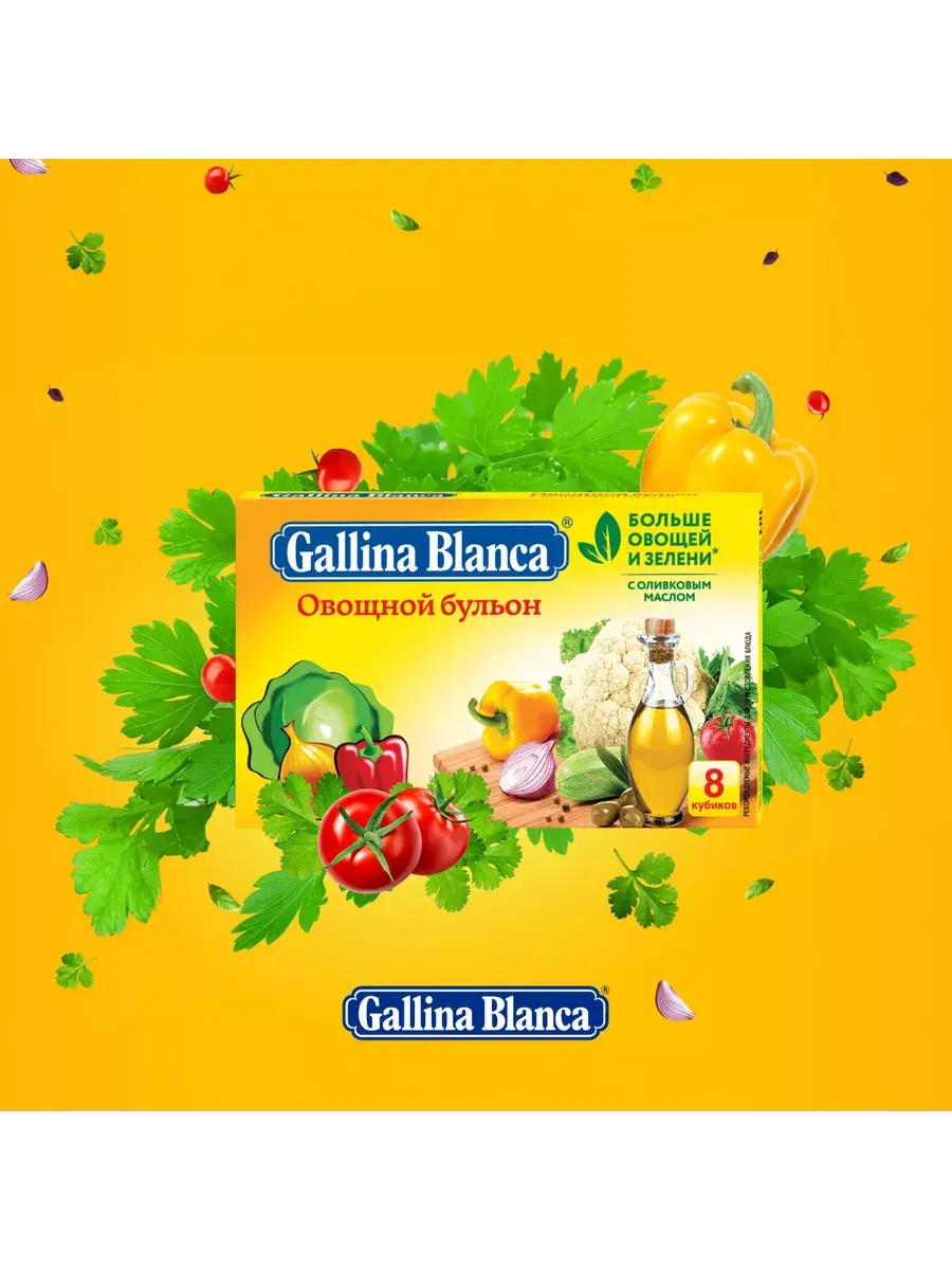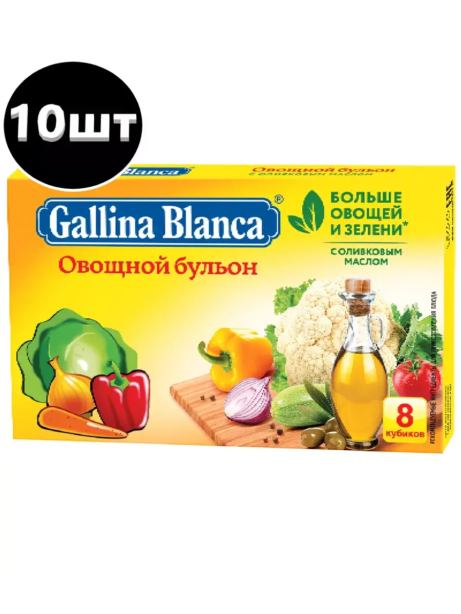 Знаменитые кубики бульона Gallina Blanca идеально подходят для приготовления блюд и придают вашим блюдам вкус и приятный аромат. Используйте кубики не только для бульона, но и для приготовления гарнира, чтобы сделать его привлекательным и золотистым. Попробуйте использовать кубики Gallina Blanca, чтобы приготовить картофель, рис, блюда из пасты и даже пельмени. Рекомендуем использовать Овощной бульон, если вы готовите легкие овощные супы или придерживаетесь поста. В комплекте 10 блоков по 80г. В каждом блоке 8 кубиков.
