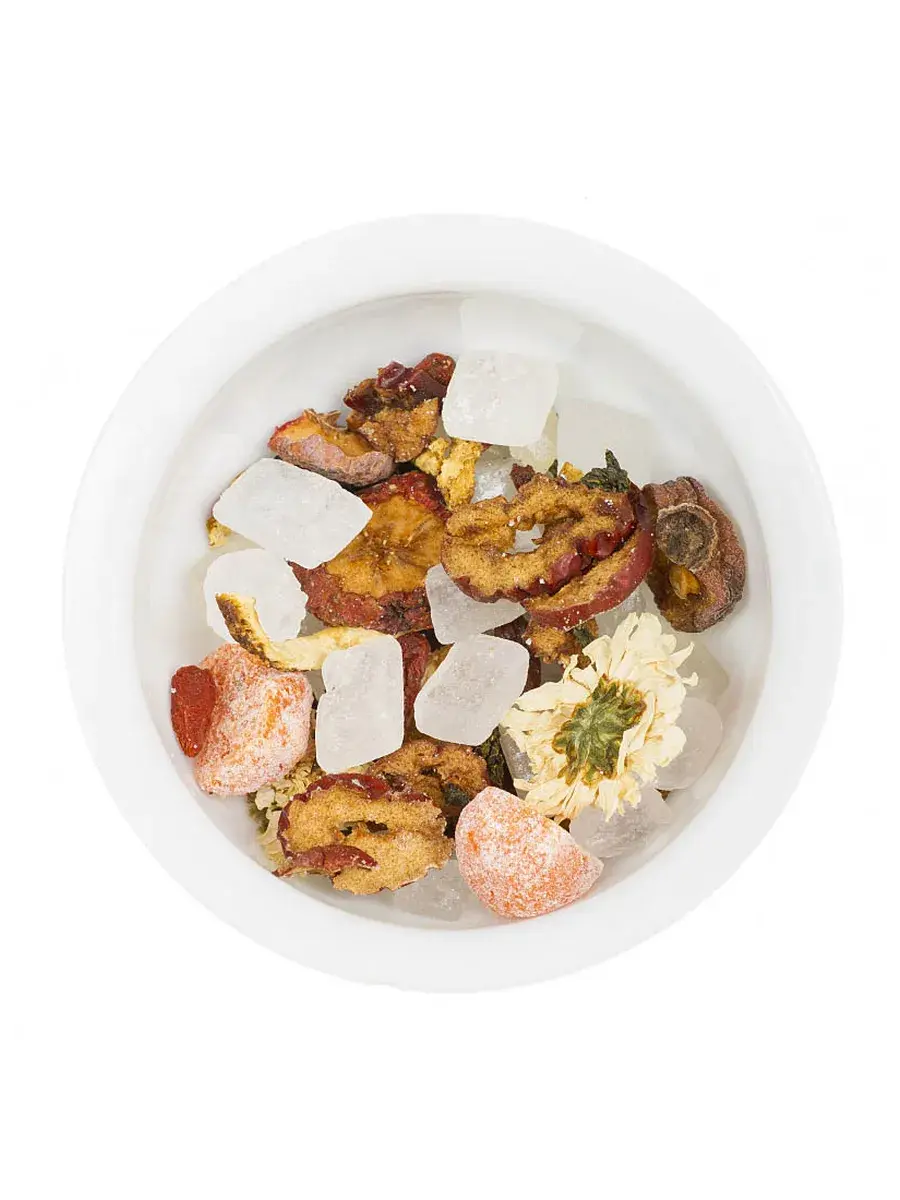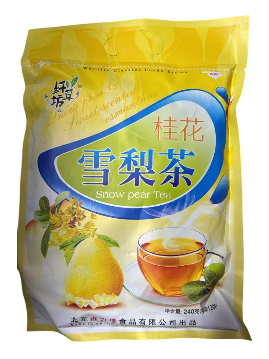 Погрузитесь в нежную гармонию чая с грушей и душистым османтусом — напитка, рождённого на пересечении вкуса и пользы. Сочные снежные груши наполняют чай мягкой сладостью, а изысканные цветы османтуса придают тонкий цветочный аромат, пробуждая чувство свежести и спокойствия. В сочетании с боярышником, лилиями, лакрицей и зелёным чаем этот напиток не только радует вкус, но и заботится о вашем организме. Каждая чашка помогает мягко успокоить горло, поддержать лёгкие, снять усталость, нормализовать давление и укрепить иммунитет. Созданный по традиционным рецептам китайской медицины, этот чай — природный путь к лёгкости дыхания, чистоте мыслей и ощущению внутреннего равновесия. Способ приготовления: Выложите содержимое пакетика в чашку и залейте кипятком. Дайте напитку настояться 10 минут.