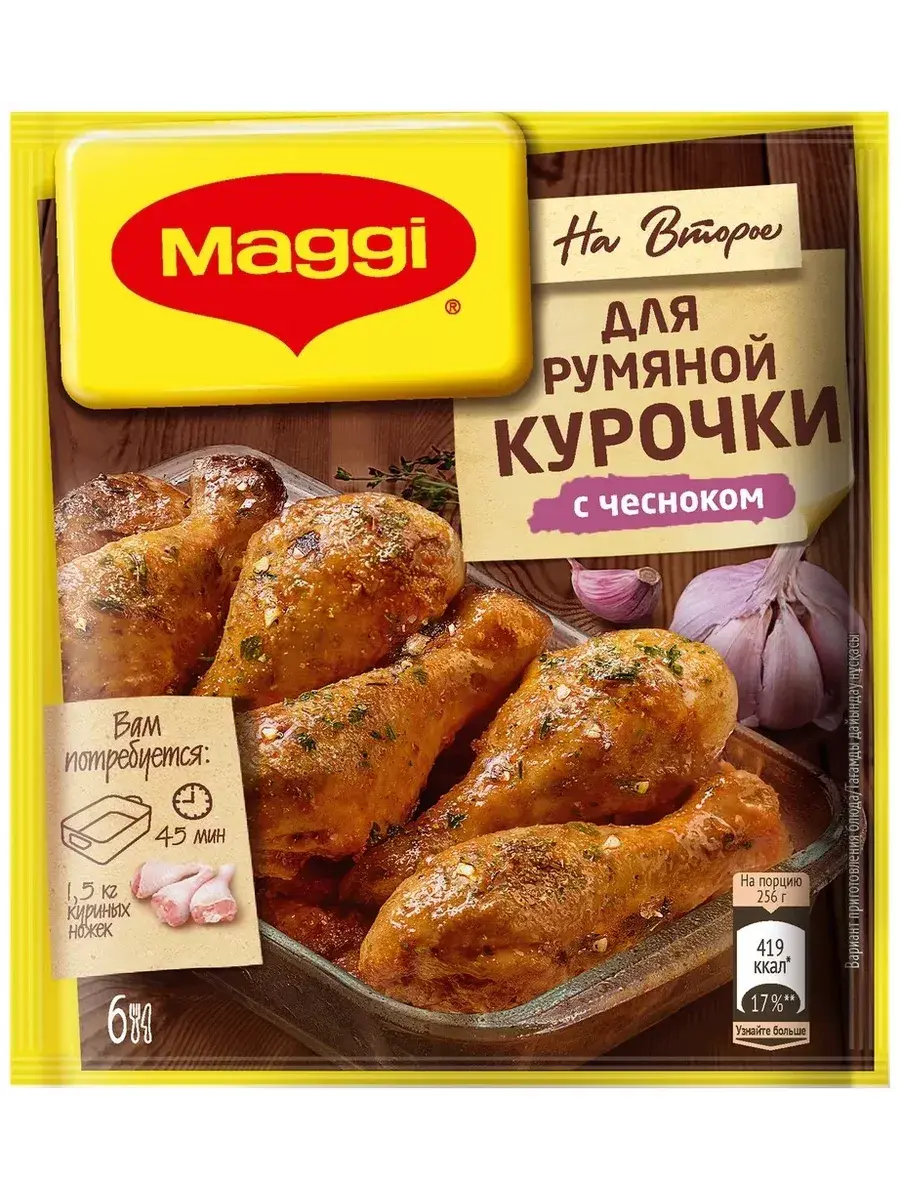 Курочка - любимое блюдо, как детей, так и взрослых. Существует множество вариаций приготовления, наиболее популярный - это запечкание в духовке. Смесь для приготовления румяной курочки с чесноком MAGGI поможет упростить процесс приготовления и превратить привычное блюдо в кулинарный шедевр!