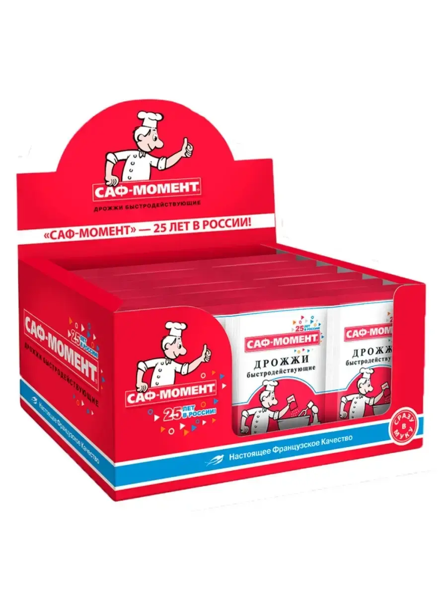 Дрожжи сухие быстродействующие Саф-момент стали надежным помощником каждой хозяйки на кухне. Дрожжи "Cаф-Момент" универсальны и легки в применении. Это быстродействующие дрожжи, которые могут быть добавлены непосредственно в сухие ингредиенты без предварительного разведения в воде. 1 пакетик на 1 кг муки. Вес 1 пакетика сухих быстродействующих дрожжей Саф-момент составляет 11 грамм. В отличие от сухих дрожжей подъемная сила сухих дрожжей саф-момент остается неизменной на протяжении всего срока хранения. Срок хранения 2 года. Состав сухих быстродействующих дрожжей Саф-момент