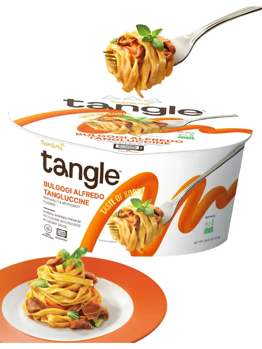 Тангл — это макароны в корейском стиле, также известные как К-паста, приготовленные из высушенной на воздухе лапши и фирменного корейского соуса. Samyang Tangle Bulgogi — это фетучини в корейском стиле со сливочным соусом Бульгоги. Бульгоги — это маринованная говядина по-корейски в остро-сладком соусе, приготовленная из соевого соуса, сахара, чеснока и лука. Насладитесь яркими нотками азиатской кухни с фетучини — идеальный выбор для тех, кто ищет что-то новое и необычное.