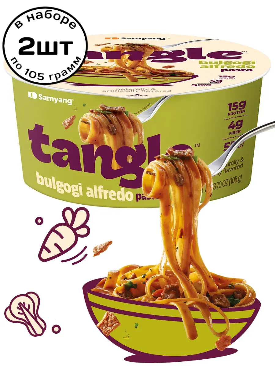 Откройте для себя идеальное сочетание насыщенных корейских вкусов и нежной сливочной текстуры с нашей пастой в корейском стиле. Феттуччини, покрытые сладко-пряным соусом со вкусом бульгоги, погружены в кремовую нежность, создавая удивительный гастрономический баланс. Упругая и эластичная паста создаётся по инновационной технологии воздушной сушки — для идеальной текстуры и превосходного удержания соуса в каждом укусе. Революционная протеиновая паста! Сливочно-пряный вкус, в котором соединились классический Альфредо и ароматное корейское бульгоги. Феттуччини в кремовом бульгоги-соусе — полноценное блюдо с 15 г белка и 4 г клетчатки в одной порции. Быстро / Легко / Просто — добавьте воду в чашку, разогрейте в микроволновке 5 минут — и готово! Сначала паста бланшируется, затем сушится воздухом — благодаря этому она остаётся упругой и отлично удерживает соус. В составе — крупные хлопья растительного белка и овощей, для ещё большей насыщенности вкуса и текстуры.
