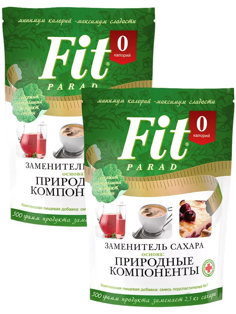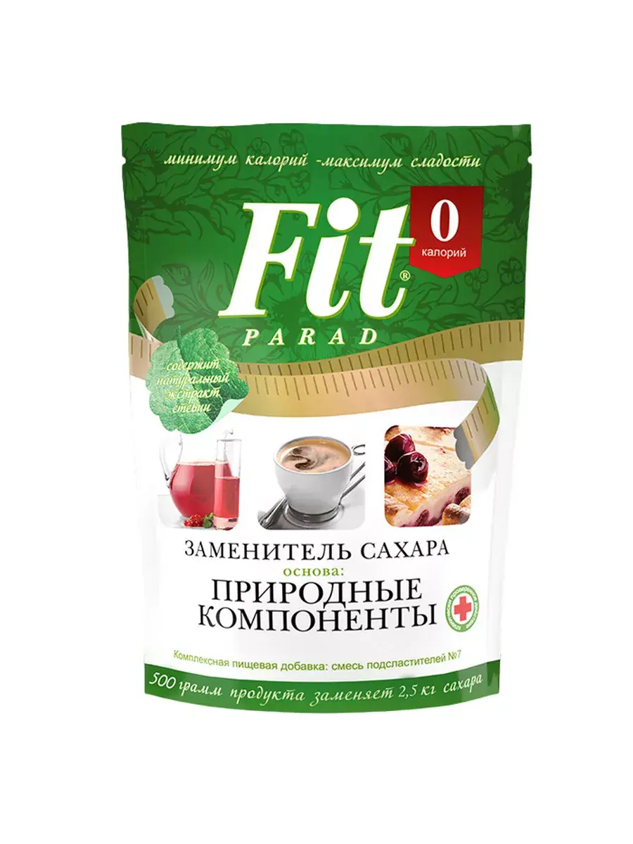 Новый тип природного подсластителя с нулевой калорийностью! Инновационный сахарозаменитель для диетического и лечебно-профилактического питания. Смесь Фит Парад на основе природных компонентов. 500 г продукта заменяет 2,5 кг сахара. Смесь подсластителей Фит Парад №7 может использоваться в производстве продуктов для потребителей, следящих за своим весом. По рекомендации врача может использоваться в составе комплексной диетотерапии больных сахарным диабетом 2-го типа. Обладает великолепным вкусом и улучшенными потребительскими свойствами благодаря сбалансированному составу специально подобранных компонентов.