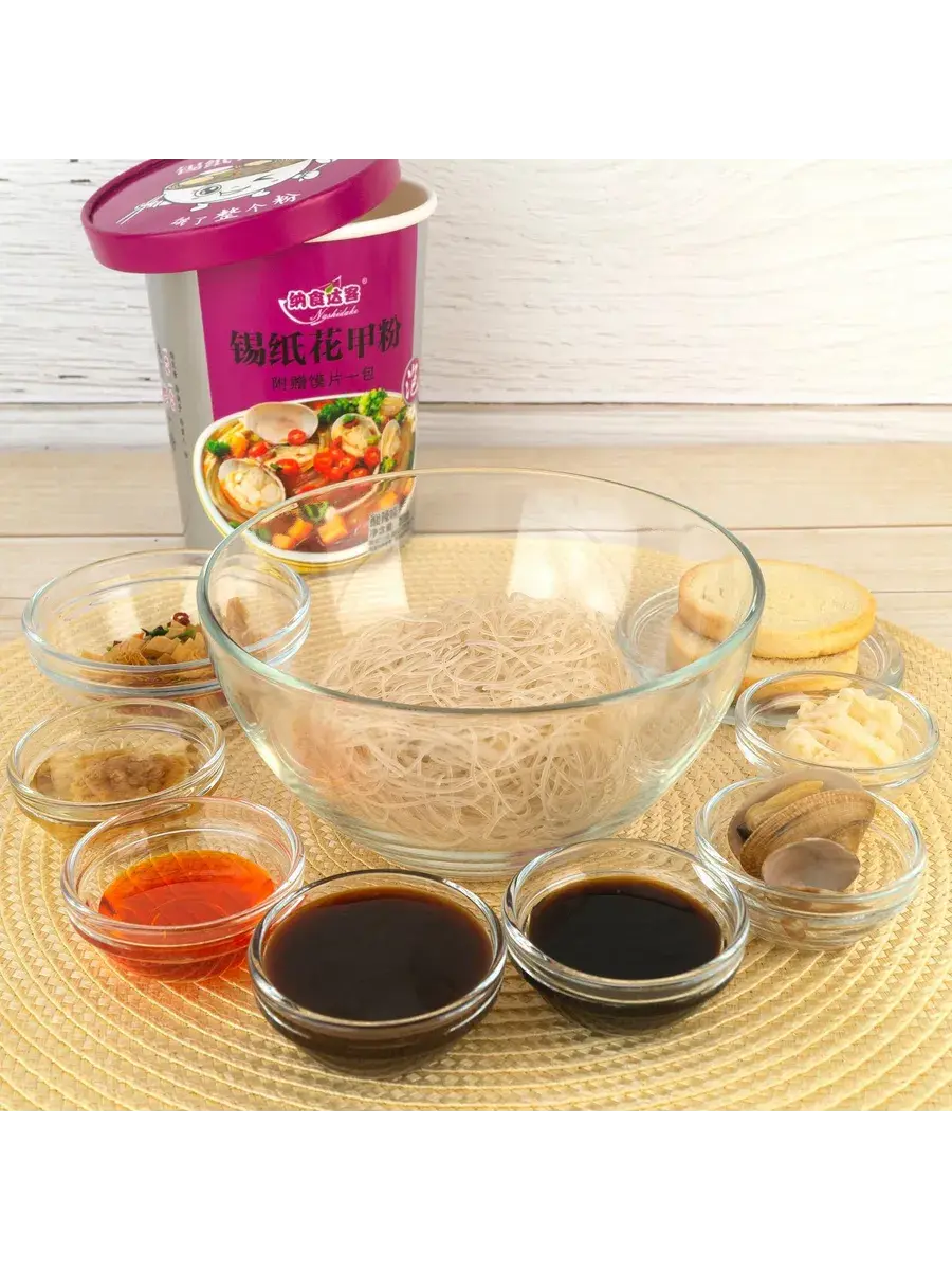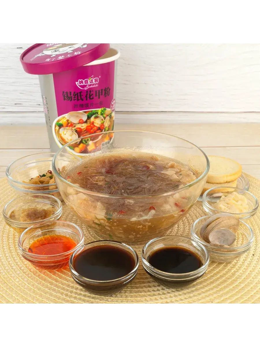 Погрузитесь в мир азиатской кухни с фунчозой, овощами и моллюсками! Эта стеклянная лапша в кисло-бобовом соусе создана для тех, кто ценит насыщенный вкус и лёгкость приготовления. Секретный рецепт с пряными нотками и нежными моллюсками раскроет перед вами всю глубину китайских традиций. Быстрое и удобное решение для ценителей острого — фунчоза, которая пробуждает аппетит ярким сочетанием специй, морепродуктов и свежих овощей. Способ приготовления: Откройте крышку стакана, распакуйте пакетики с лапшой и наполнителями, засыпьте их в стакан. Залейте в стакан кипяток, согласно отметке. Закройте крышку и дайте настояться в течение 5 минут. Хорошо перемешайте и наслаждайтесь горячим обедом.