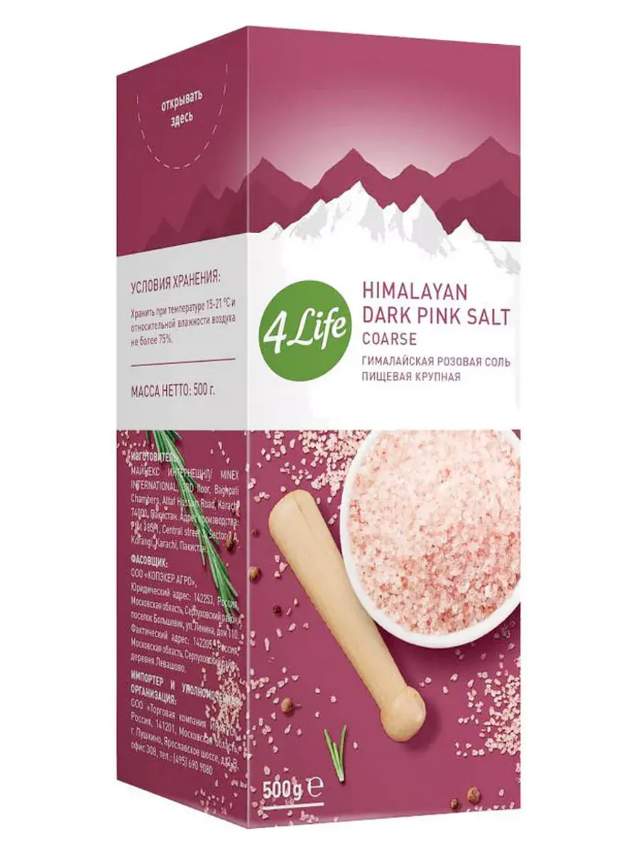 Розовая гималайская соль «4 Life» добывается в горных соляных шахтах Гималаев. Ценность этой соли – в содержании большого количества минеральных веществ минералов, главные из которых – железо и медь. Именно они и придают соли насыщенный розовый цвет. По сравнению с привычной поваренной солью, розовая обладает более мягким вкусом и деликатно подчеркивает вкус блюд.