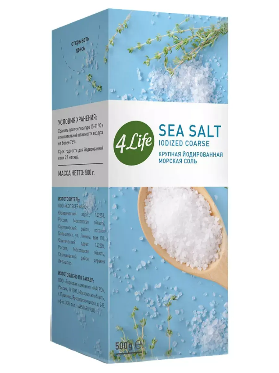 Атлантическая крупная морская йодированная соль 4Life - это 100% натуральный продукт. Морская соль предназначена для приготовления различных продуктов, а также для подсаливания уже готовых блюд. Благодаря своему особому составу, морская соль 4Life тонко и изысканно подчеркивает естественный вкус продуктов, поэтому ей отдают предпочтение и гурманы, и сторонники здорового питания. Она содержит не только NaCl, но и широкую палитру полезных для здоровья микроэлементов.