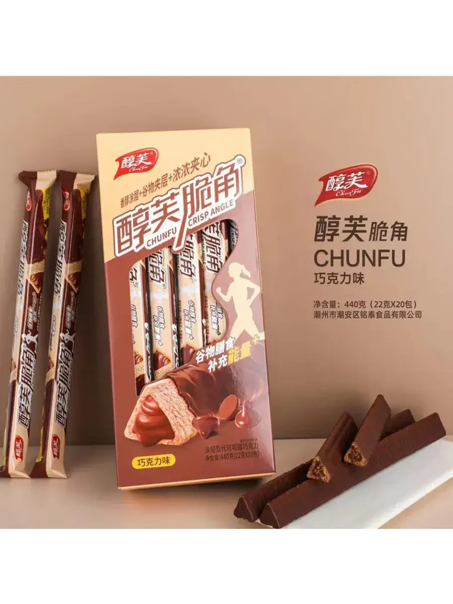 Хрустящее фитнес печенье из зерновой муки с шоколадной начинкой представляет собой трубочку треугольной формы из тончайшего бисквитного теста, начиненную ореховым кремом и покрытую вкусной шоколадной глазурью. Шоколадная начинка придает десерту особые вкусовые нотки. Печенье смачно хрустит, а сочетание разницы текстур (мягкого крема, хрустящего бисквита и нежного шоколада) доставляет огромное удовольствие ценителям шоколадно-ореховых сладостей. Такое печенье станет удачным перекусом в течение дня, дополнит чашечку любимого кофе, чая или какао. Быстрый источник энергии после тренировок! В блоке 20 трубочек по 22г.