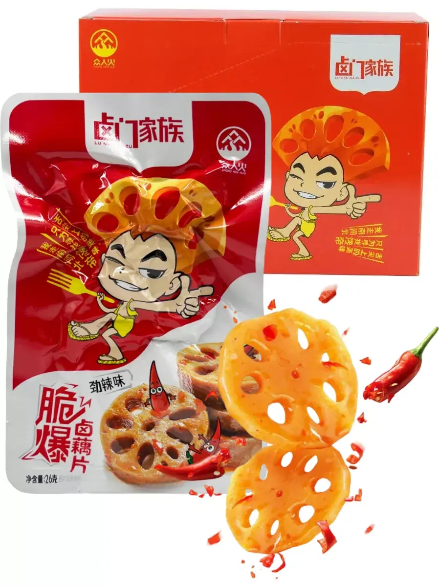 Жареные ломтики корня лотоса в остром соусе представляет собой уникальное блюдо в азиатской кухне. Продукт готов к употреблению! Корень лотоса, известный своей хрустящей текстурой и нейтральным вкусом, приобретает особый аромат и пикантность благодаря острому соусу. Острые ноты добавляют пикантности и интенсивности этому деликатесу, который может быть использован в качестве закуски, добавки к салатам или основным блюдам. Корень лотоса не только обладает привлекательным вкусом, но и содержит полезные питательные вещества, такие как витамины, минералы и антиоксиданты. В блоке 20 пачек по 26г.