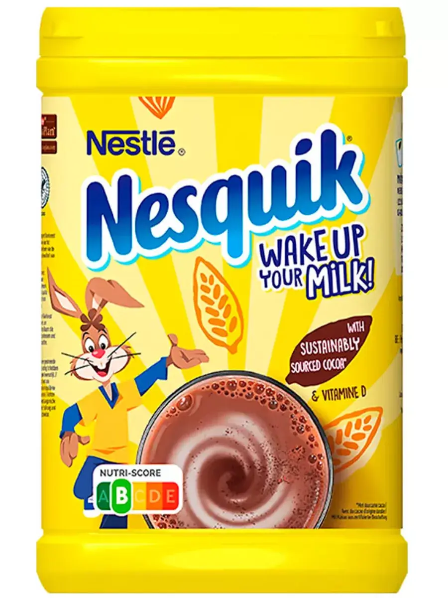 Какао-напиток Nesquik - отличное начало дня! Ведь с ним завтрак веселее! Nesquik делает молоко еще вкуснее и дополняет его пользу витаминами. Витамин D способствует усвоению кальция из молока, а также необходим для крепких и здоровых костей. А витамин С способствует нормальному функционированию иммунной системы, росту и развитию детского организма.