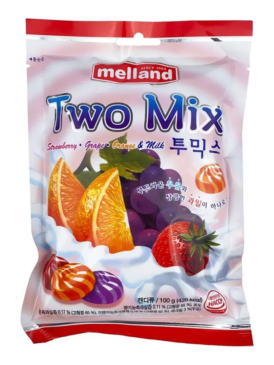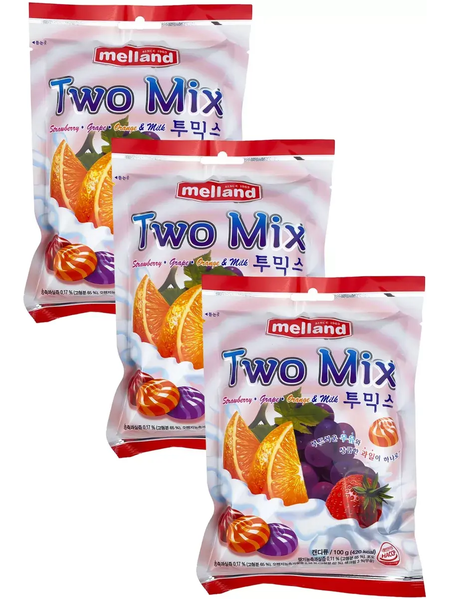 Карамель Two Mix от торговой марки Melland – это яркое и необычное лакомство со сливочно-фруктовым вкусом, которое оценят дети и взрослые. Небольшие сладкие леденцы удобно брать с собой на работу и учёбу, где можно угостить друзей и поделиться с ними чудесными корейскими сладостями.