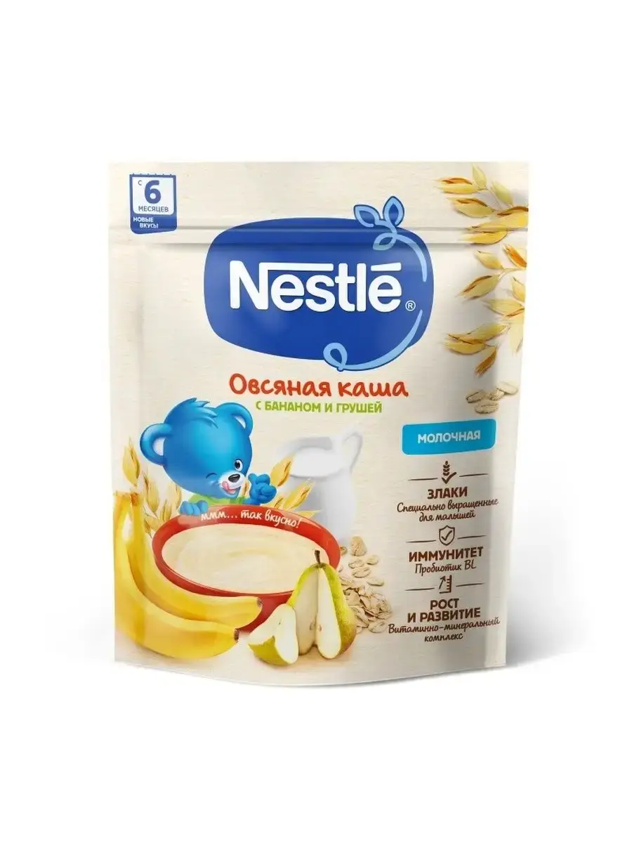 Молочная овсяная каша с грушей и бананом для детей старше 6 месяцев согласно законодательству РФ.