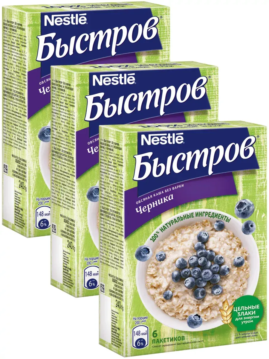 Начни утро с полезных каш Быстров! В хлопьях сохранены все полезные компоненты овсяного зерна (оболочка, эндосперм и зародыш), а значит максимум полезных свойств. Каждая порция каши является источником пищевых волокон (клетчатки), необходимых для пищеварения. Хлопья в каше такие же полезные, как и варимые, но они тоньше поэтому для приготовления их достаточно залить кипятком. Способ приготовления: высыпьте содержимое пакета в тарелку. Залейте кипятком (160 мл). Тщательно размешайте. Накройте, подождите 5 минут. В комплекте 3 пачки по 240г. В каждой пачке по 6 пакетиков.