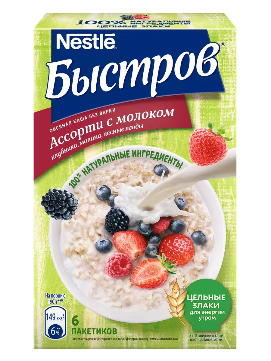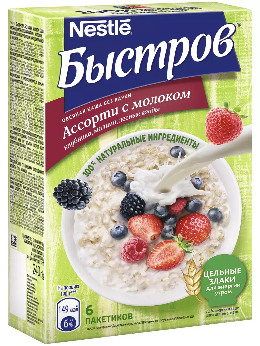 Начни утро с полезных каш Быстров! В хлопьях сохранены все полезные компоненты овсяного зерна (оболочка, эндосперм и зародыш), а значит максимум полезных свойств. Каждая порция каши является источником пищевых волокон (клетчатки), необходимых для пищеварения. Хлопья в каше такие же полезные, как и варимые, но они тоньше поэтому для приготовления их достаточно залить кипятком. Способ приготовления: высыпьте содержимое пакета в тарелку. Залейте кипятком (150 мл). Тщательно размешайте. Накройте, подождите 5 минут. В комплекте 3 пачки по 240г. В каждой пачке по 6 пакетиков.