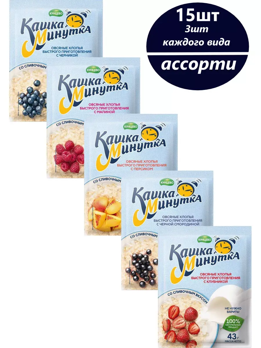 Хлопья овсяные быстрого приготовления “Кашка-Минутка” сэкономят не только Ваше время, но и добавят сил и энергию прекрасным утром. Вкусы в удобных порционных пакетах. Просто добавьте горячего молока или воды!