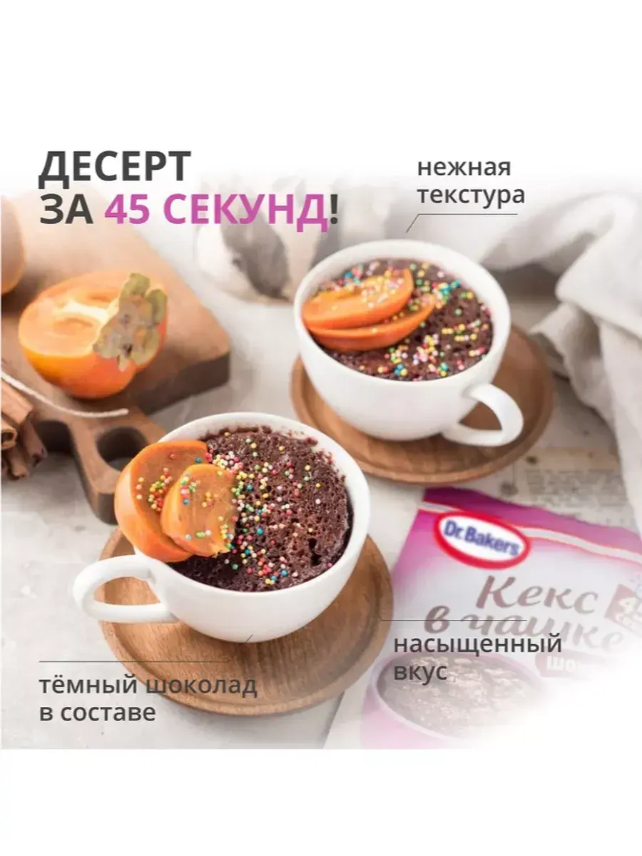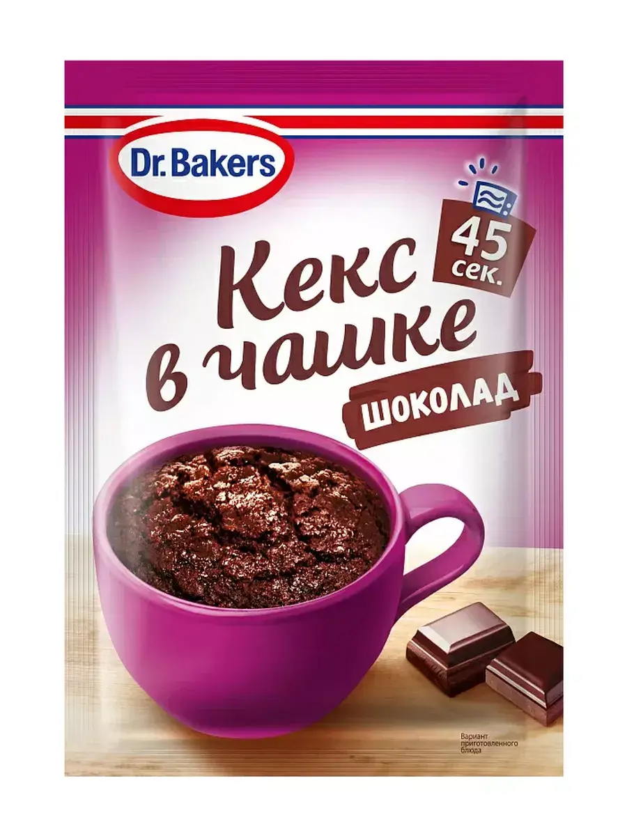 Вкусный десерт, приготовленный за 45 секунд, такое возможно? Да, если это кекс в чашке от Dr. Bakers! Настоящий бельгийский шоколад в составе этого продукта делает его вкус насыщенным и сочно-шоколадным.