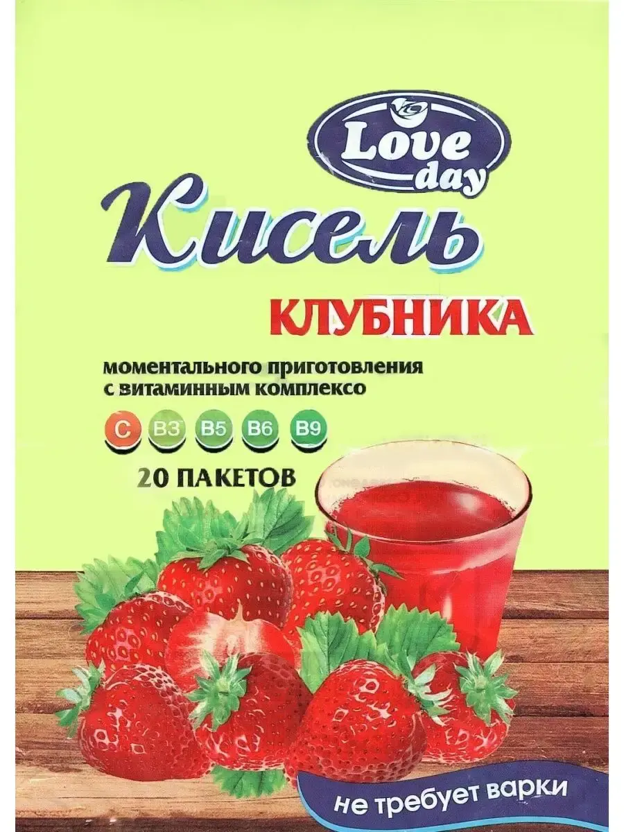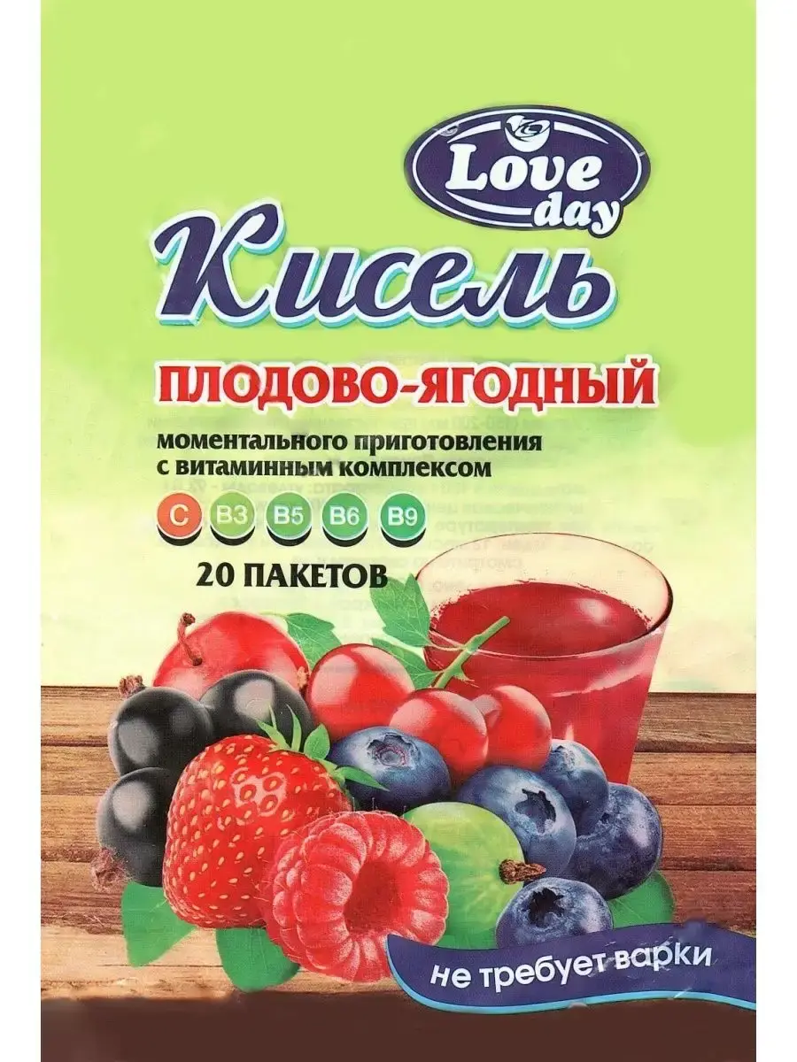 Кисель плодово-ягодни LOVE DAY 20 пакетиков. Вкусы: клубника, клюква, черника. В киселе используются 100% натуральные ингредиенты. Напиток изготавливается из сырья высшего качества, что позволяет сохранить все вкусовые качества фруктов и ягод. Без добавления красителей, ароматизаторов и консервантов. Диетический кисель изготавливается на натуральной основе, сухих соках фруктов и ягод. В состав входит витаминный микс C, B3, B5, B6, B9. Подходит для похудения и правильного и здорового питания. Пейте после еды вместо чая c печеньем! Витаминный комплекс по?.
