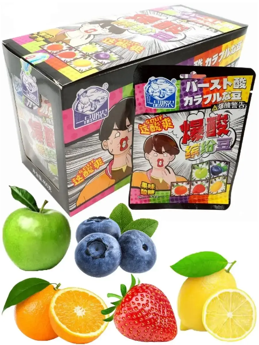 Кислая жевательная карамель со вкусом фруктового микса точно не оставит вас равнодушными! Насыщенный кислый вкус постепенно перетекает в сладкий-фруктовый, но не каждый сможет удержать эту конфетку во рту. Яркая упаковка привлечет внимание всех вокруг и будет поднимать настроение во время перекуса. Кислая карамель придется по душе как детям, так и взрослым, особенно оценят любители азиатских сладостей. В коробке 20 штук индивидуальных упаковок.