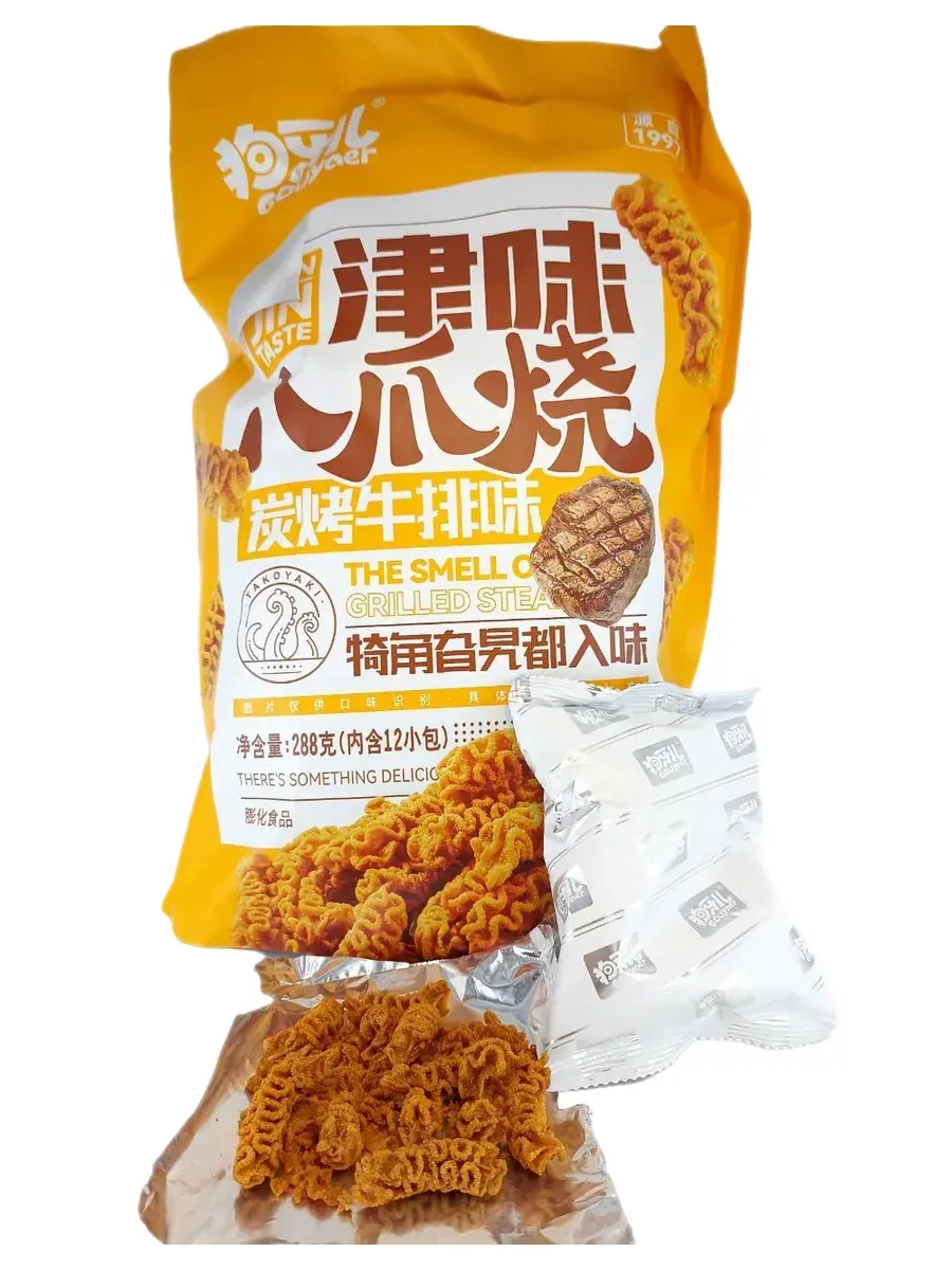 Окунитесь в мир китайских чипсов с насыщенным вкусом стейка на гриле! Эти воздушные, хрустящие снеки созданы из рисовой и пшеничной муки, чтобы подарить вам идеальный баланс пикантности и легкости. Каждая упаковка – это взрыв вкуса и удовольствия, готовый стать вашим любимым перекусом. По вкусу это что-то среднее между привычными картофельными чипсами и сухариками. Форма и разновидности добавок - полностью в китайских традициях. Отличаются слегка сладковатым привкусом, который придает контраст и удачно выделает основные специи.