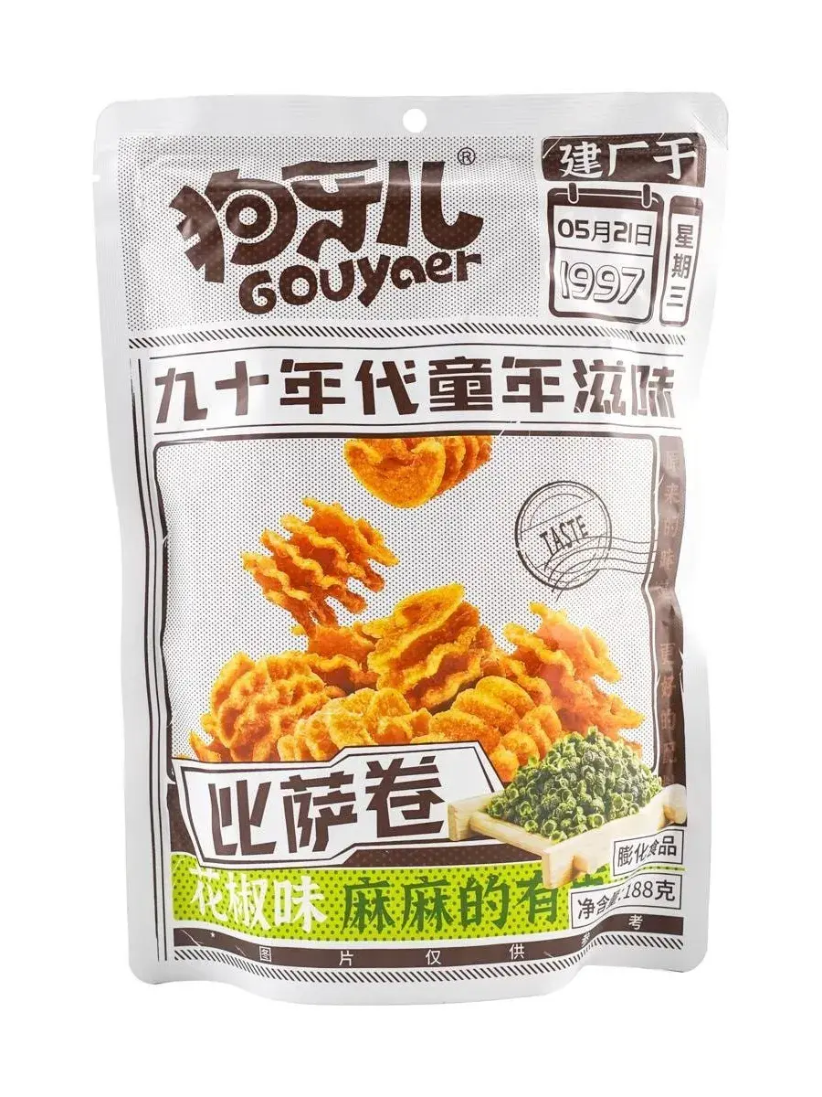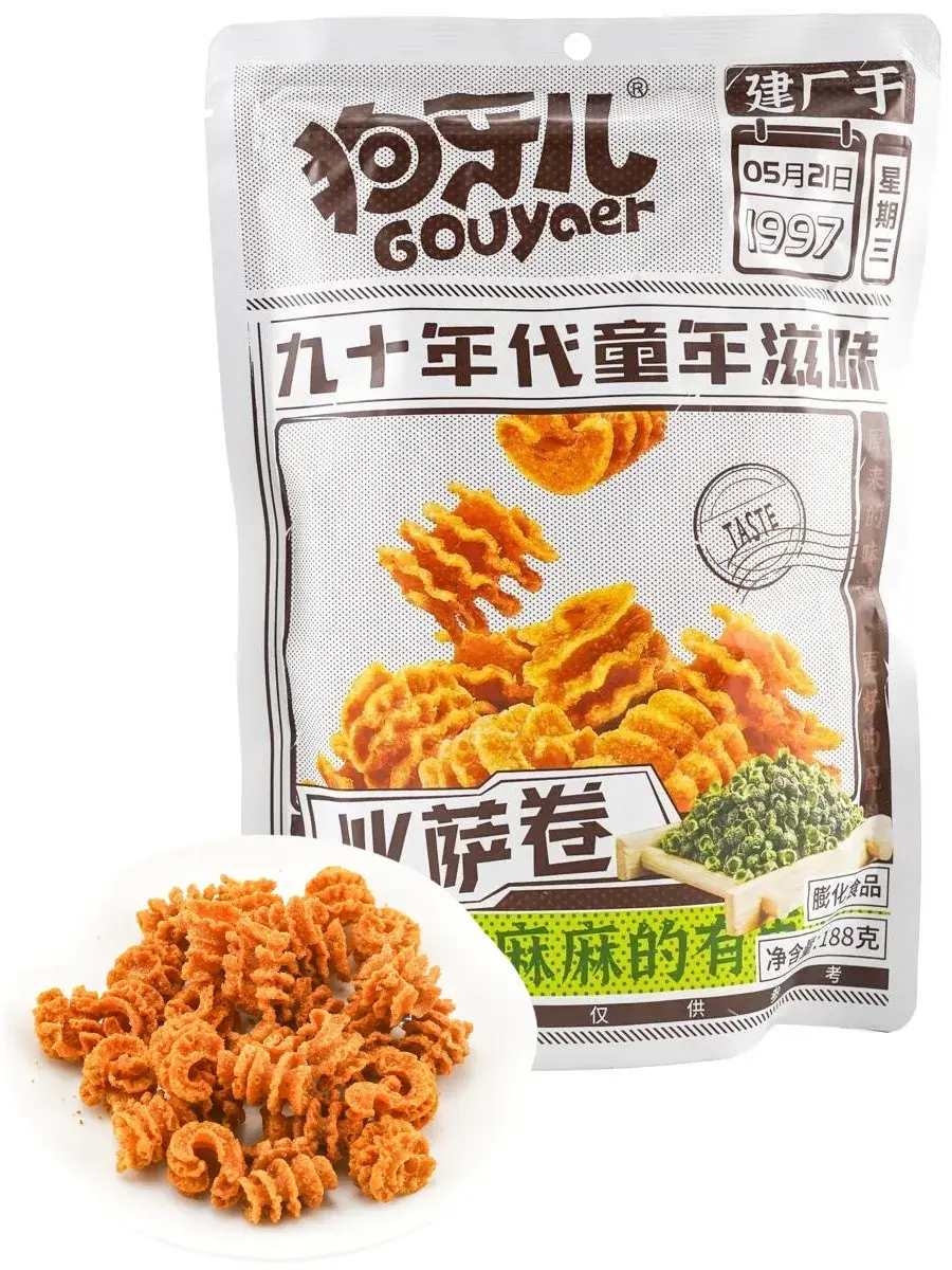 Пицца-ролл — оригинальные чипсы, сочетающие в себе уникальный вкус и текстуру! Сделанные из рисовой и пшеничной муки, они представляют собой нечто среднее между хрустящими картофельными чипсами и ароматными сухариками. Благодаря слегка сладковатому привкусу, характерному для китайских закусок, специи раскрываются ещё ярче. Хрустящие, острые и совершенно неотразимые — эти чипсы Gouyaer перенесут вас в атмосферу 90-х! Вдохновленные вкусами детства, но с современным акцентом, они идеально подойдут как для компании, так и для личного удовольствия. Ощутите магию любимых уличных закусок в каждом кусочке!