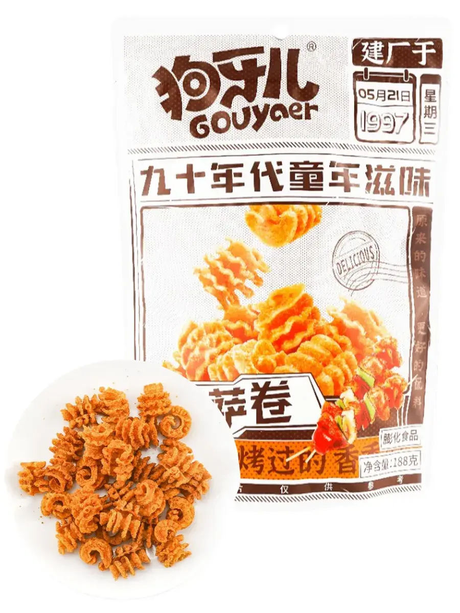 Пицца-ролл — оригинальные чипсы, сочетающие в себе уникальный вкус и текстуру! Сделанные из рисовой и пшеничной муки, они представляют собой нечто среднее между хрустящими картофельными чипсами и ароматными сухариками. Благодаря слегка сладковатому привкусу, характерному для китайских закусок, специи раскрываются ещё ярче. Хрустящие, острые и совершенно неотразимые — эти чипсы Gouyaer перенесут вас в атмосферу 90-х! Вдохновленные вкусами детства, но с современным акцентом, они идеально подойдут как для компании, так и для личного удовольствия. Ощутите магию любимых уличных закусок в каждом кусочке!