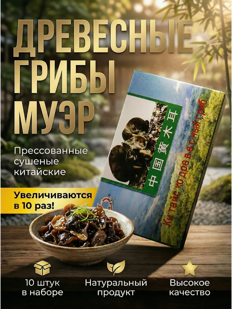 Добавьте экзотики и пользы в свой рацион с аутентичным китайским древесными грибами. Этот продукт, известный также как «черные древесные ушки» или «муэр», является незаменимым ингредиентом паназиатской кухни и ценится во всем мире за свои уникальные текстурные и целебные свойства.