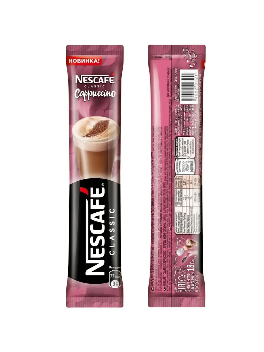Для приготовления ароматного насыщенного кофе с пенкой не обязательно быть бариста. А благодаря удобной индивидуальной упаковке можно насладиться любимой чашечкой кофе где и когда угодно, ведь его так легко приготовить! С кофе NESCAFE Cappuccino вы откроете для себя насыщенный кофейный вкус и аромат, вместе с нежной молочной пенкой, которые подарят вам незабываемый перерыв!