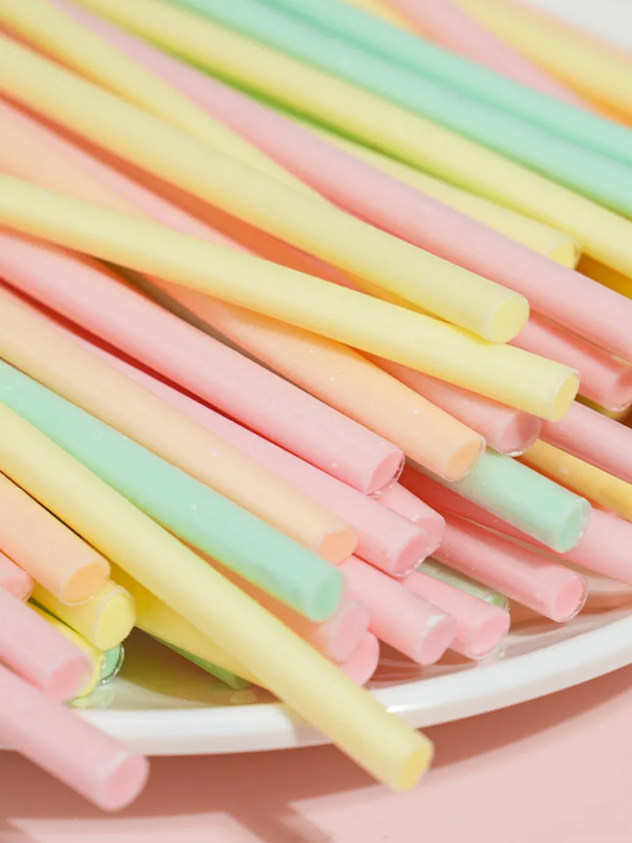 Йогуртовые трубочки — это яркие, аккуратные «палочки радости»: снаружи тонкая конфетная оболочка, внутри — мягкая йогуртовая начинка с фруктовыми нотами, которая даёт сливочную нежность без приторности. Трубочки удобно брать в дорогу, делиться в офисе и использовать как съедобный декор для десертов — они не пачкают руки и держат форму, а начинка остаётся кремовой до последней крошки. Формат — «всегда под рукой»: одна-две штуки закрывают тягу к сладкому, а упаковка с миксом цветов и вкусов добавляет элемент выбора (и немного геймификации — собери свою радугу). Продукт для тех, кто хочет не просто сахарный всплеск, а баланс яркого вкуса и мягкой текстуры; честно предупреждаем: внутри именно йогуртовый крем, поэтому ожидание «твёрдой карамели» здесь не про нас — у нас про сливочную нежность и лёгкое фруктовое настроение.