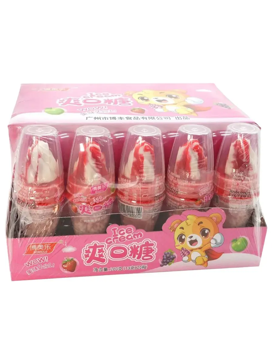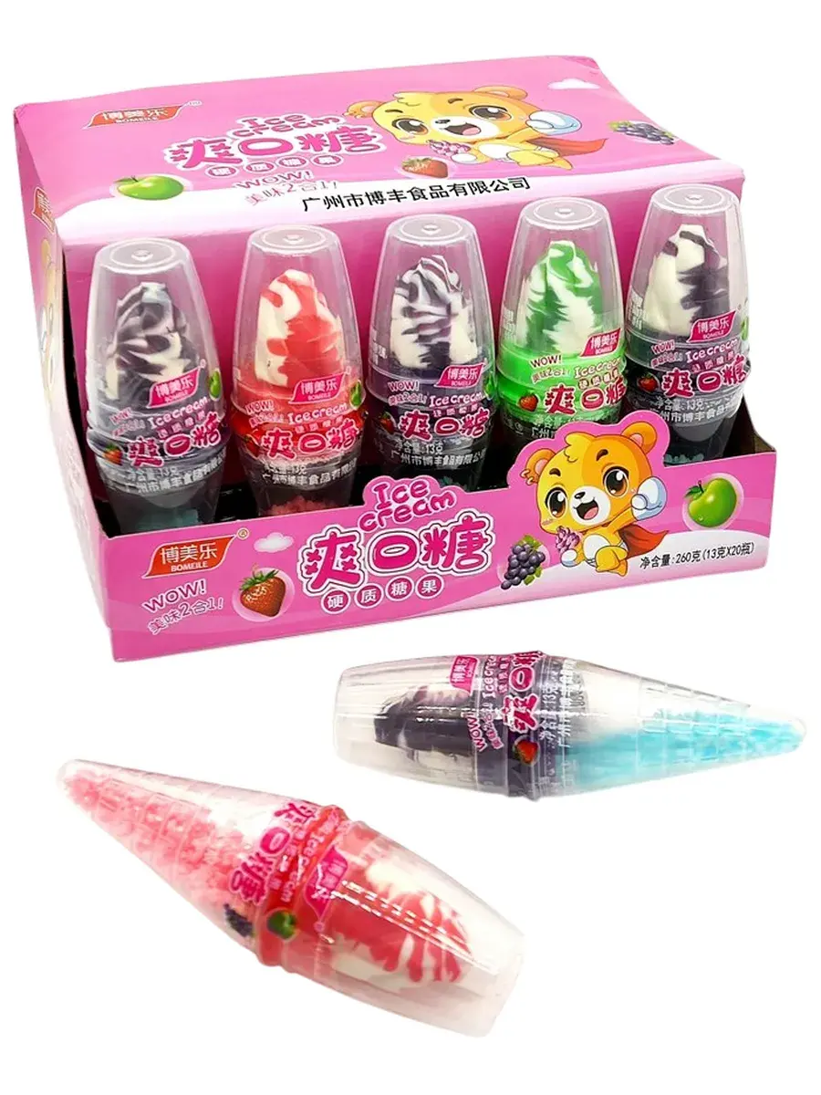 Леденцы в виде мороженого с взрывной карамелью — это сочетание ярких фруктовых вкусов и шипучей карамели, которое подарит настоящий взрыв эмоций! Каждый леденец в виде мороженого обмакивается в шипучие кристаллы, создавая на языке настоящий фейерверк вкуса. Наслаждайся сладким мороженым, которое раскрывает не только приятную свежесть, но и взрывные ощущения, превращая перекус в настоящее приключение! Удобная и веселая форма для сладкого удовольствия в любой момент. В блоке 20 штук.