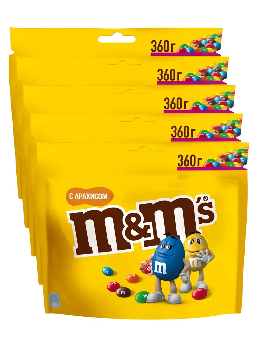 Немного арахиса + много вкуса = безудержное веселье. Берите на любой праздник пару пачек вкусного угощения M&M's с арахисом в молочном шоколаде! Пачка идеально подойдет как для просмотра кино или сериала, так и для того, чтобы взять с собой в дорогу и не ждать весь день, а получить удовольствие даже от утренней поездки на работу. Возьмите одну из упаковок в офис и порадуйте себя и коллег! Попробуйте добавить M&M’s в ваши любимые десерты, чтобы удивить родных и близких или просто побаловать себя. В комплекте 5 пачек по 360г.