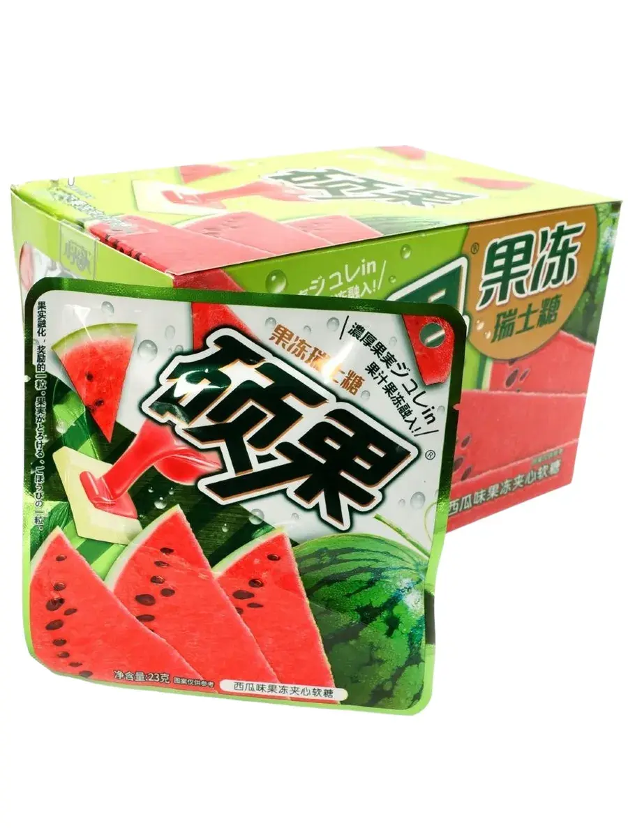 Забудьте о серых буднях! Подарите себе и своим близким порцию радости с жевательными конфетами со вкусом арбуза. Жевательные конфеты невероятно мягкие, а мармеладная начинка добавляет удивительное ощущение нежности при каждом укусе. Идеально подходит для прогулок, путешествий или просто для того, чтобы поднять себе настроение! Это не просто сладость — это маленький кусочек лета, который вы можете взять с собой куда угодно. Удобная упаковка позволяет наслаждаться сладким моментом в любое время и в любом месте — на прогулке, на учебе или в офисе. В блоке 20 пачек по 23г.
