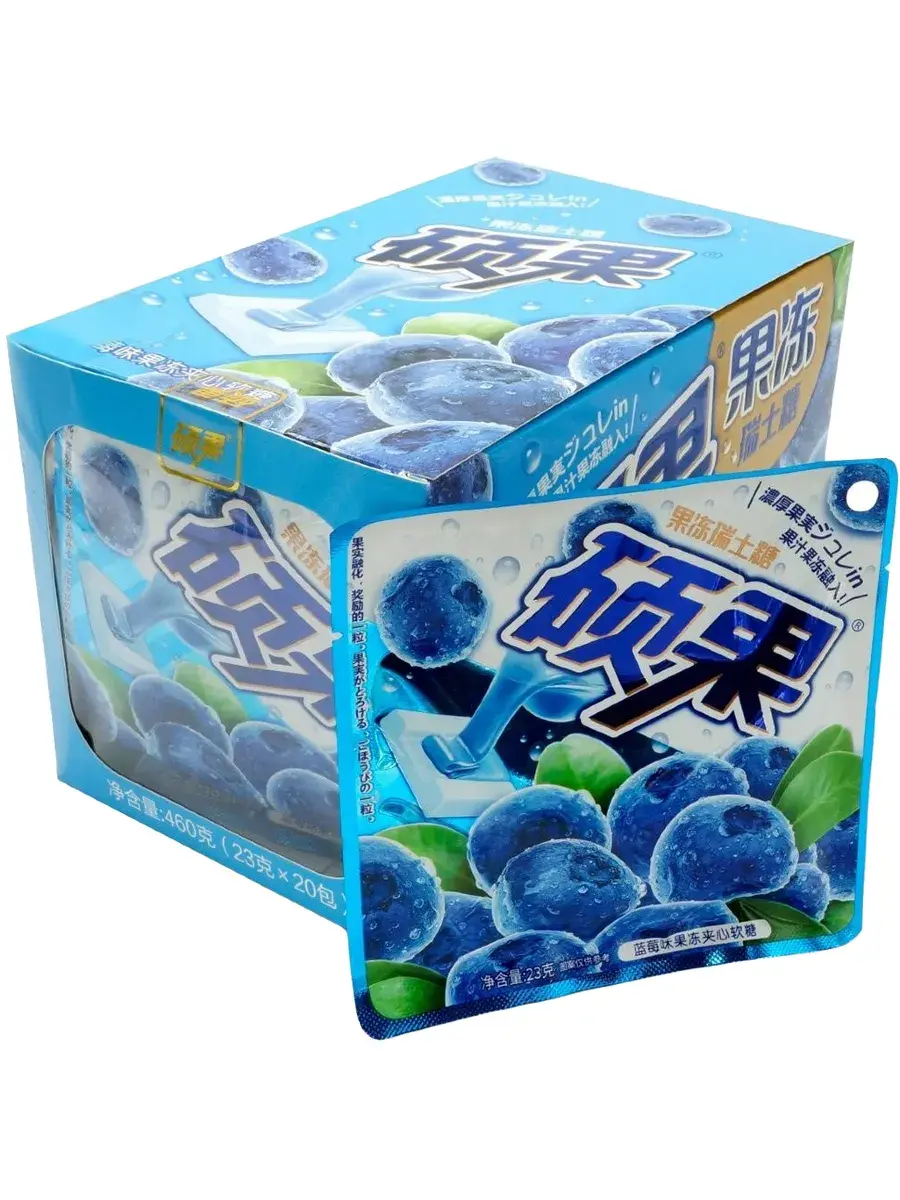 Забудьте о серых буднях! Подарите себе и своим близким порцию радости с жевательными конфетами со вкусом черники. Жевательные конфеты невероятно мягкие, а мармеладная начинка добавляет удивительное ощущение нежности при каждом укусе. Идеально подходит для прогулок, путешествий или просто для того, чтобы поднять себе настроение! Это не просто сладость — это маленький кусочек лета, который вы можете взять с собой куда угодно. Удобная упаковка позволяет наслаждаться сладким моментом в любое время и в любом месте — на прогулке, на учебе или в офисе. В блоке 20 пачек по 23 г.