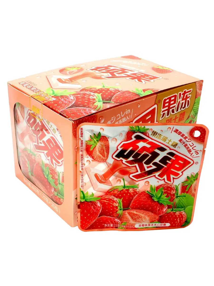 Забудьте о серых буднях! Подарите себе и своим близким порцию радости с жевательными конфетами со вкусом клубники. Жевательные конфеты невероятно мягкие, а мармеладная начинка добавляет удивительное ощущение нежности при каждом укусе. Идеально подходит для прогулок, путешествий или просто для того, чтобы поднять себе настроение! Это не просто сладость — это маленький кусочек лета, который вы можете взять с собой куда угодно. Удобная упаковка позволяет наслаждаться сладким моментом в любое время и в любом месте — на прогулке, на учебе или в офисе. В блоке 20 пачек по 23 г.