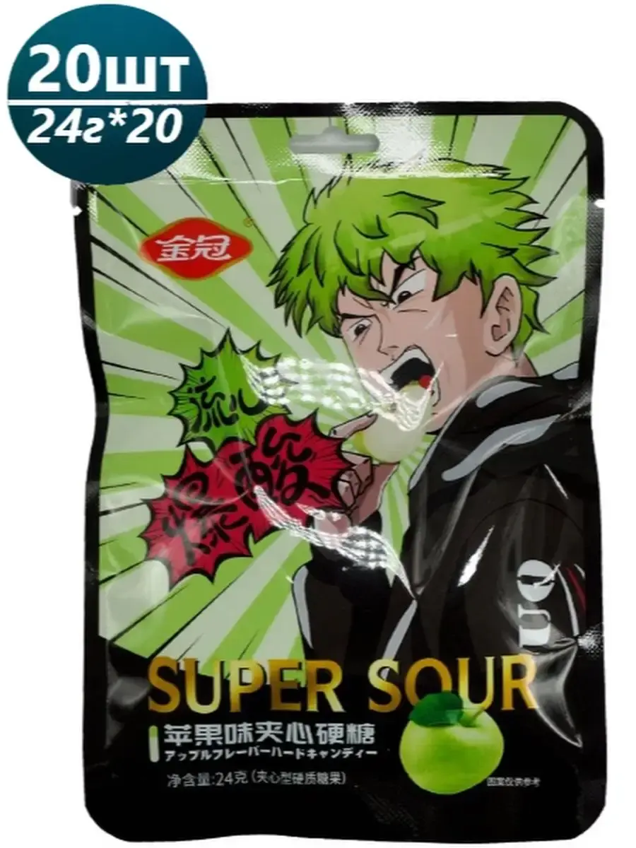 Супер кислые леденцы с фруктовыми вкусами придутся по вкусу всем любителям необычных азиатских конфет. Кислые снаружи и сладкие внутри конфеты Super Sour! В упаковке 20 штук, чтобы каждый мог насладиться великолепным вкусовым переходом. Яркая и красивая упаковка в стиле "Аниме" поднимет настроение во время перекуса и понравится всем фанатам этой культуры.